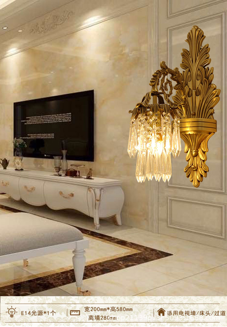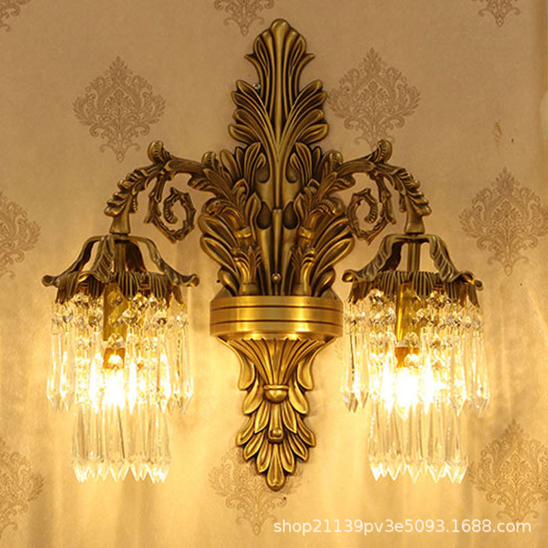 유럽식 모든 구리 크리스탈 벽 램프 프랑스 거실 TV 배경 벽 침실 침대 옆 램프 계단 통로 거울 전면 램프
