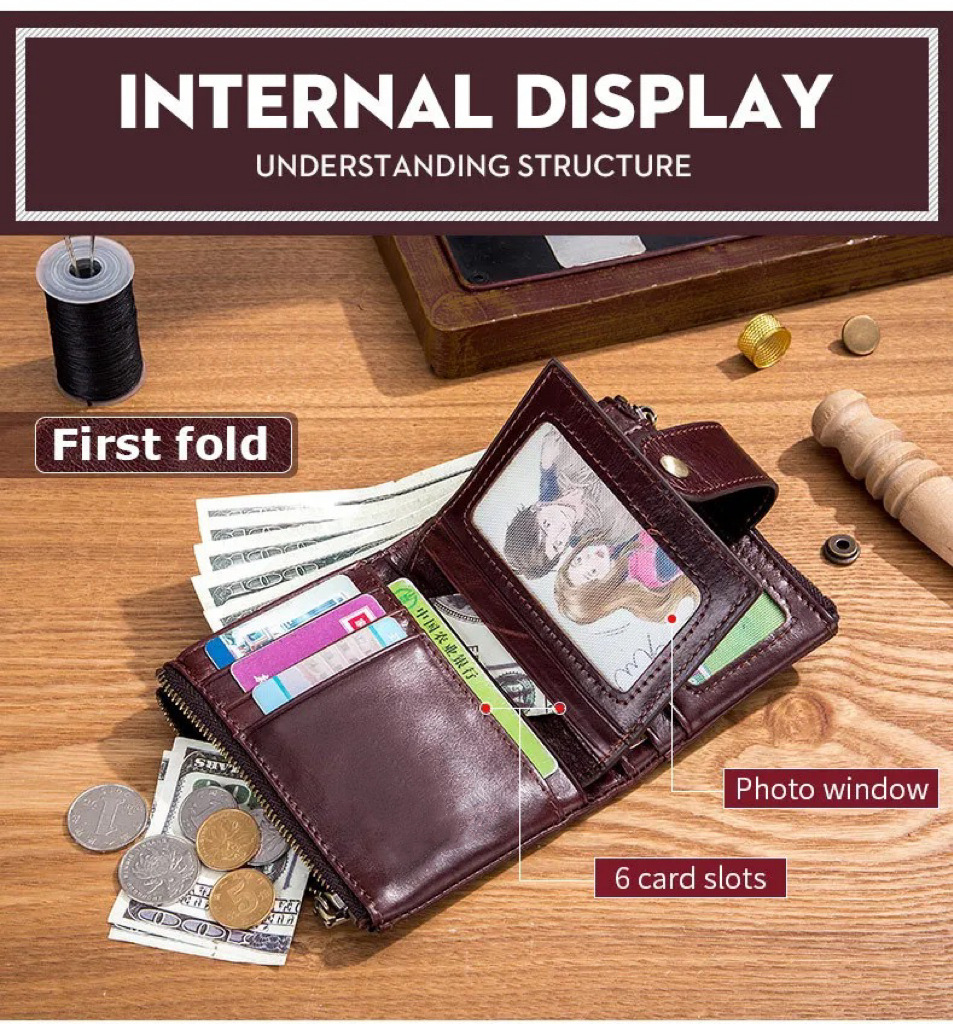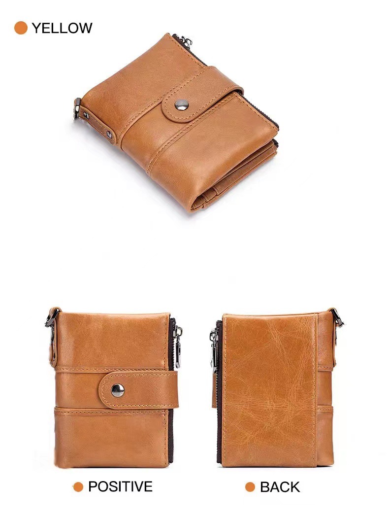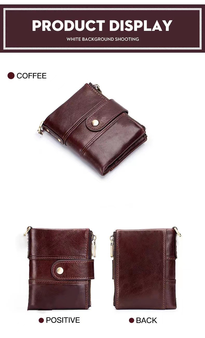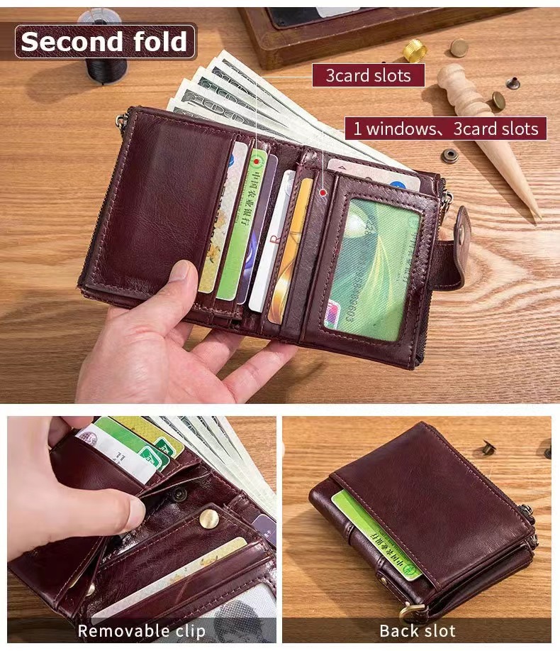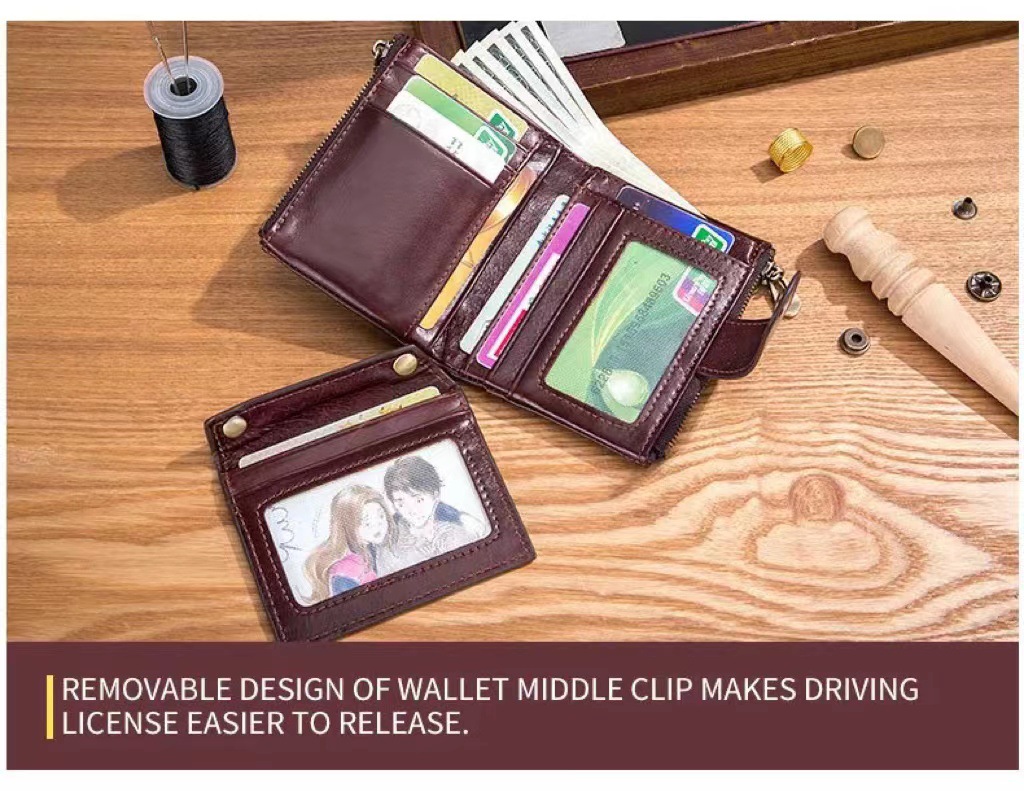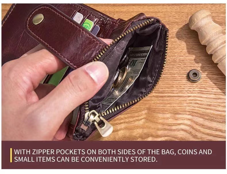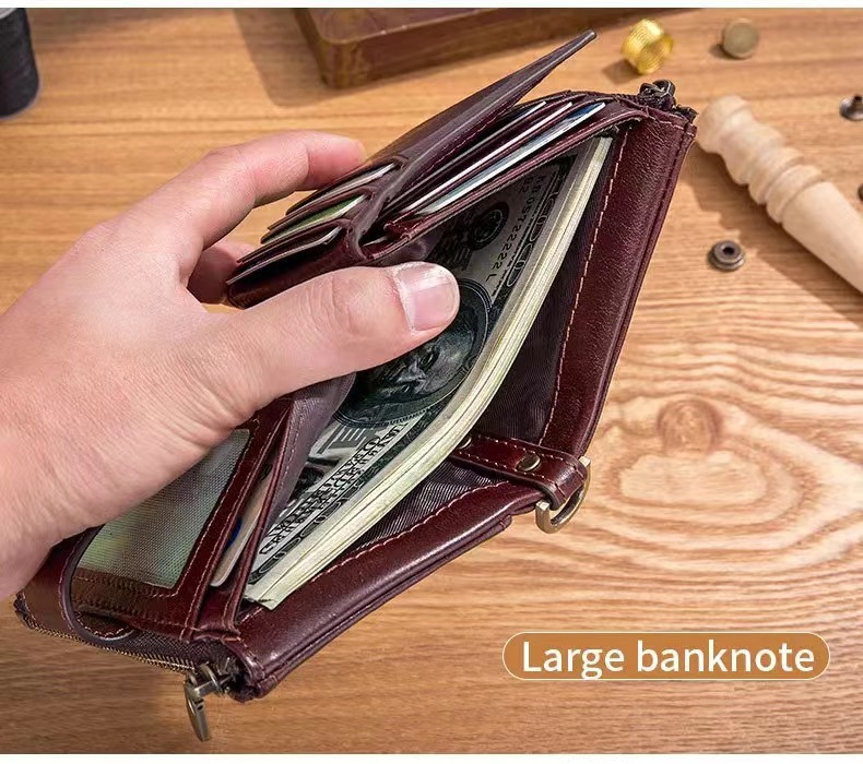 RFID 도난 방지 브러시 지갑 크로스 보더 공급 정품 가죽 다기능 버클 지퍼 레트로 남성 캐주얼 소가죽 지갑스토어 가기