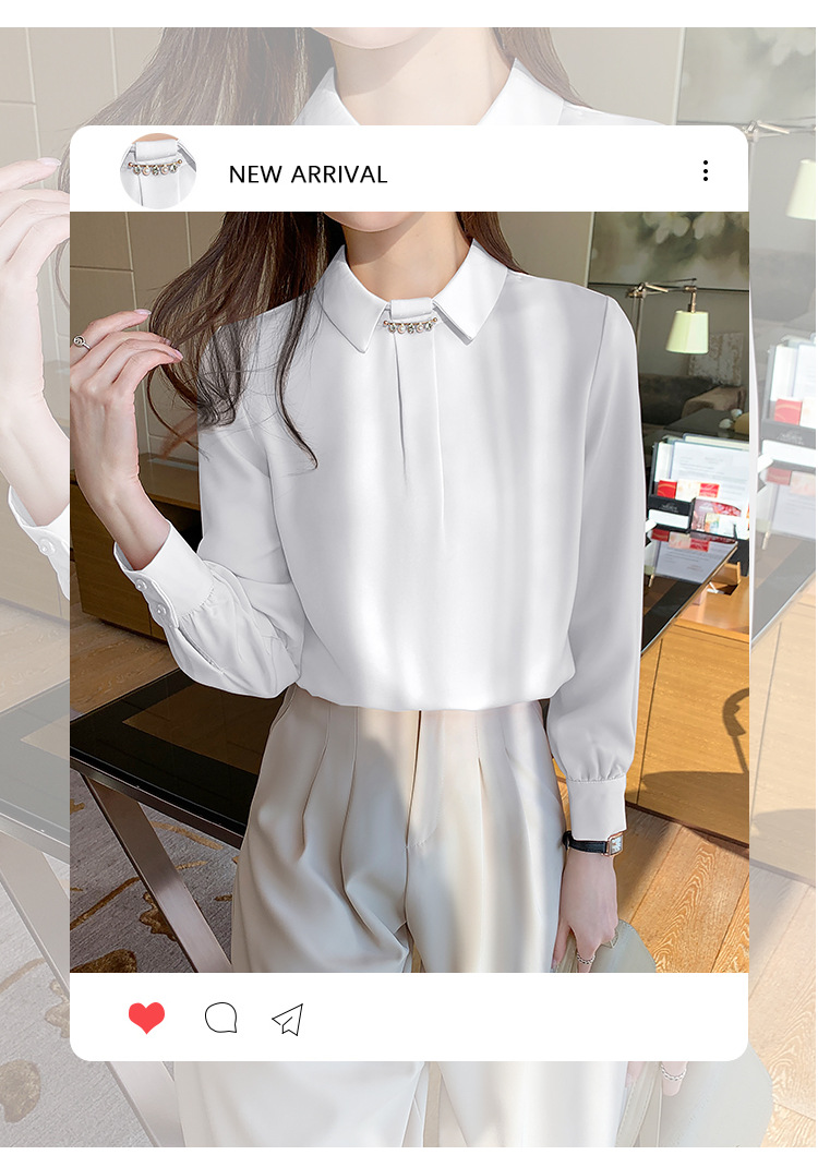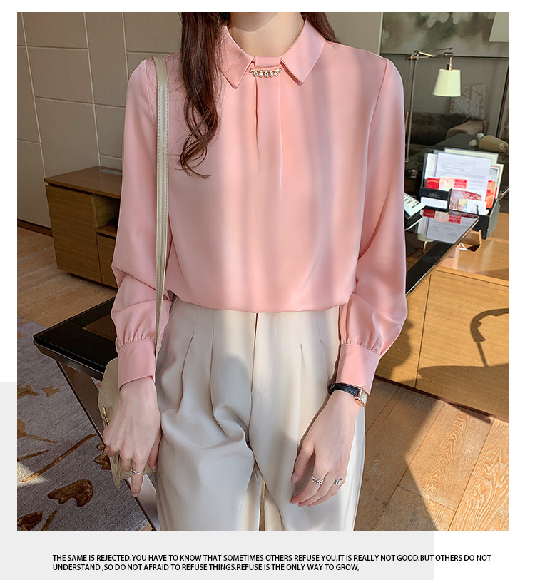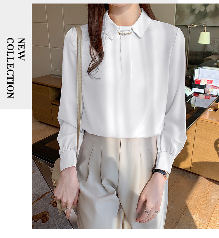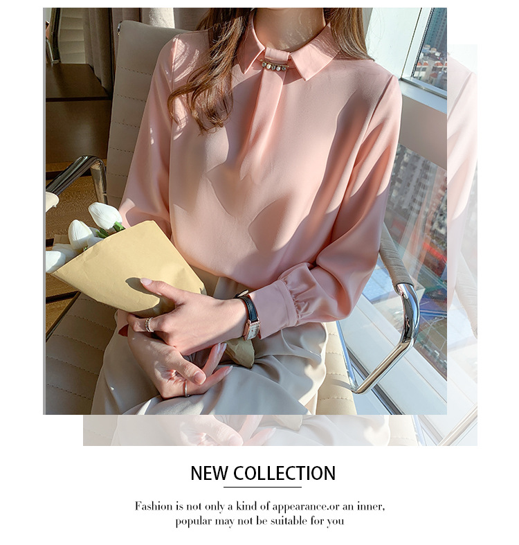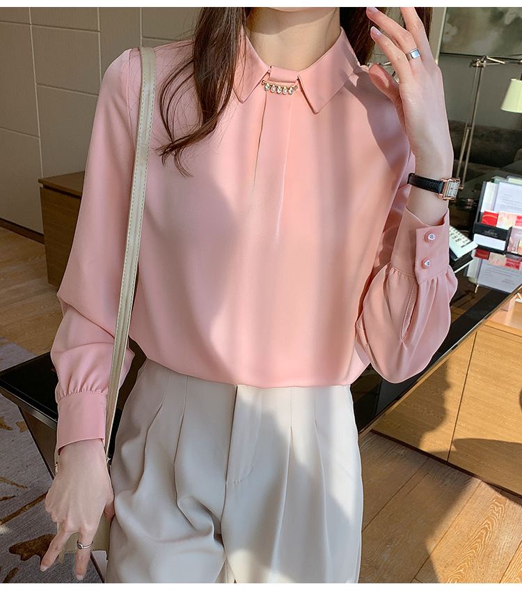 여성을위한 새틴 셔츠 2025 봄 새로운 스타일 달콤한 기질 넥 라인 구슬 패션 디자인 외국 스타일 쉬폰 탑스토어 가기