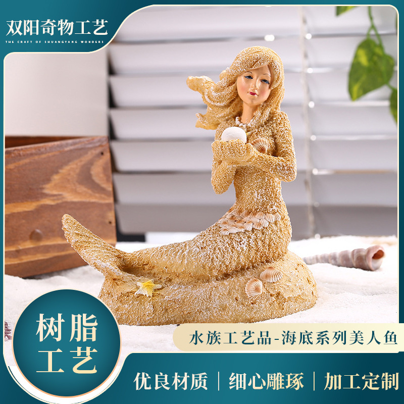도매 수족관 물고기와 새우 닷지 세트 장식 창조적 인 어항 풍경 수지 모래 조각 인어 rockery 장식품