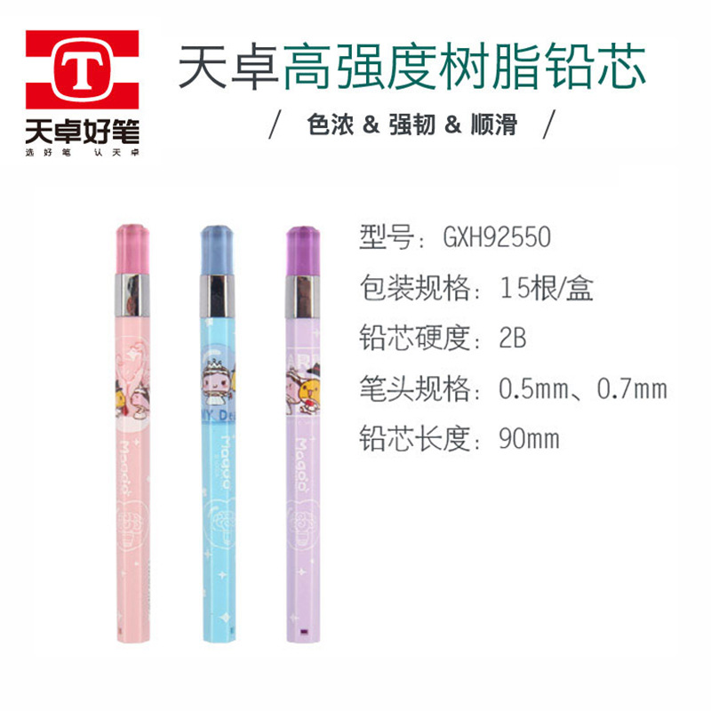 초등학생을위한 Tianzhuo 92550 자동 연필 리드 2B 리드 0.5/0.7 만화 다이아몬드 연필 리필스토어 가기