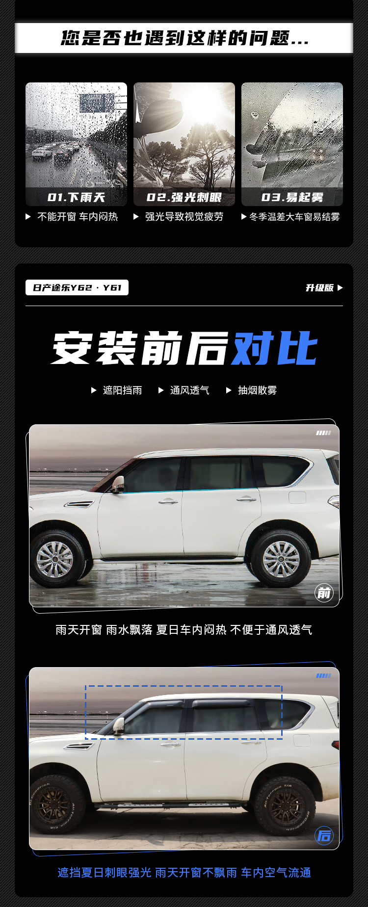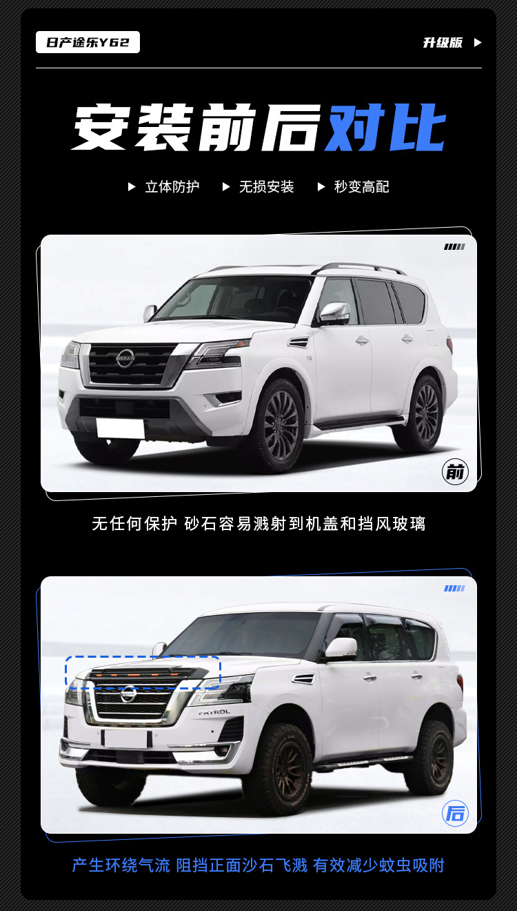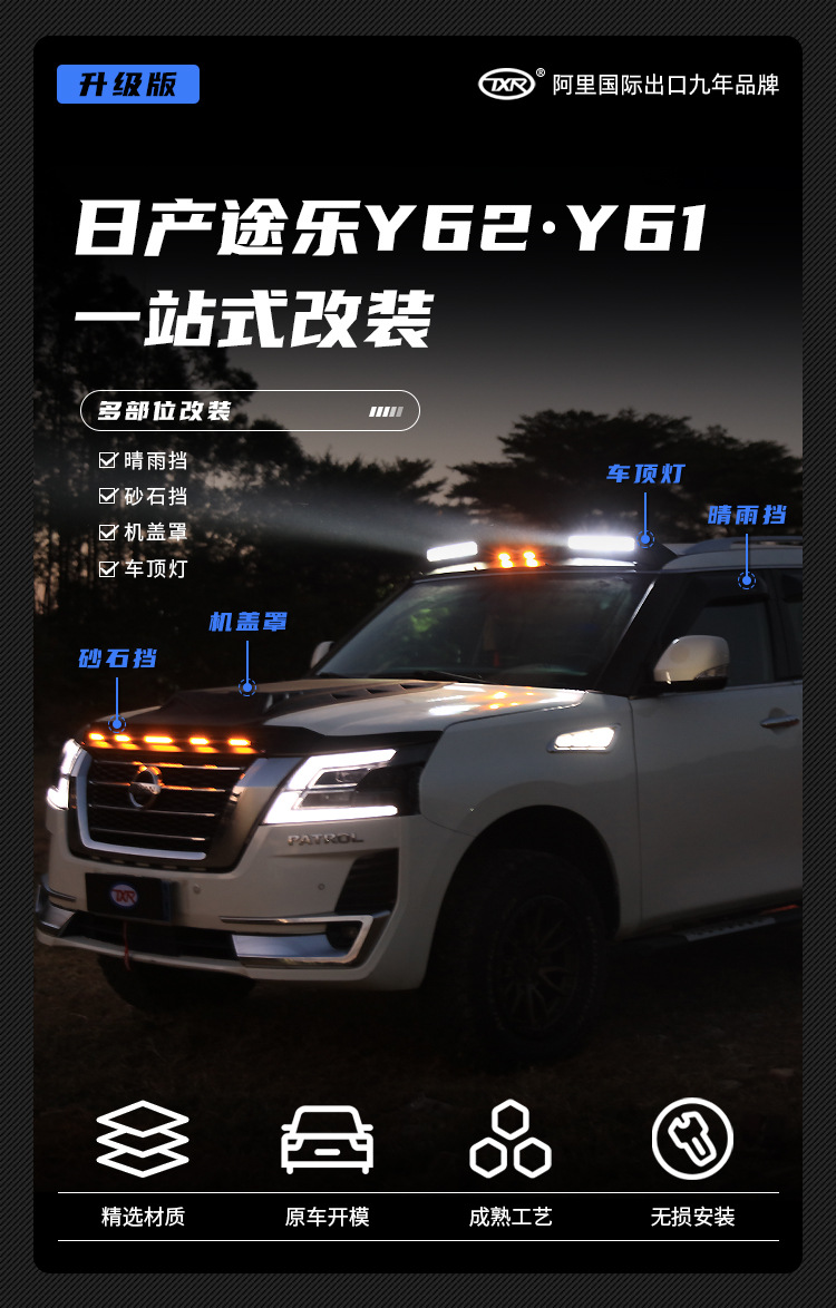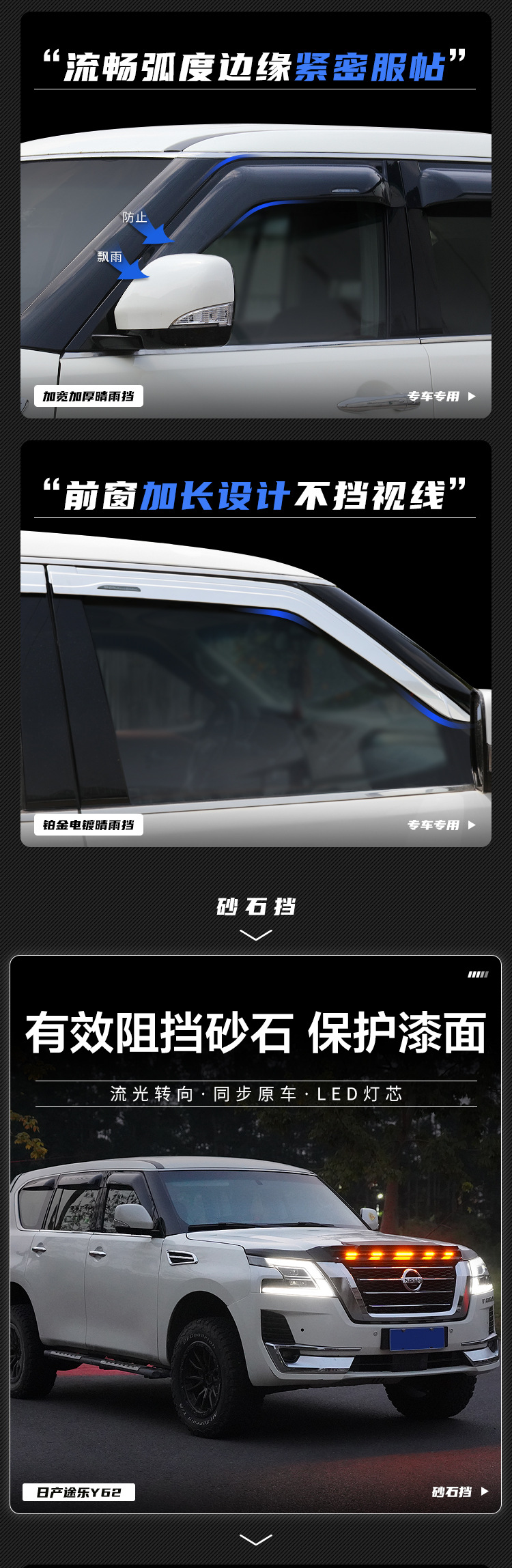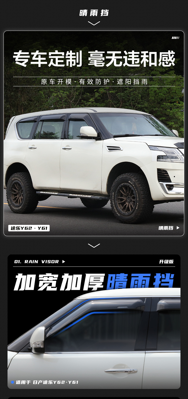 Texinrui는 Tule Y62Y61 레인 실드 창 비 눈썹 QX80 레인 실드 개조 백금 레인 실드에 적합스토어 가기