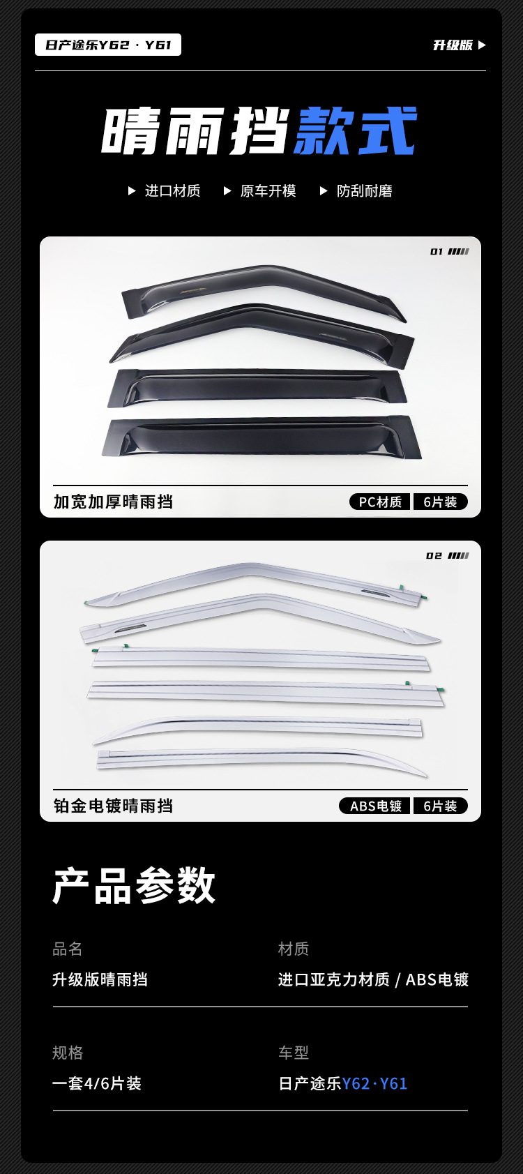 Texinrui는 Tule Y62Y61 레인 실드 창 비 눈썹 QX80 레인 실드 개조 백금 레인 실드에 적합