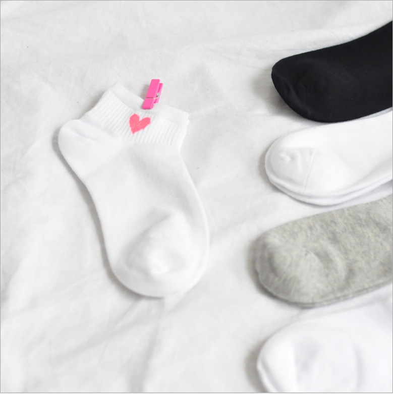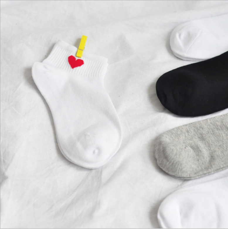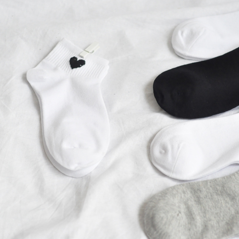 • 2001-여성 러브 보트 화이트 양말 블랙 하트