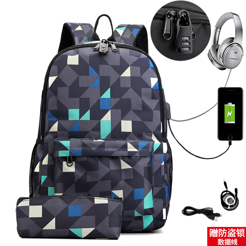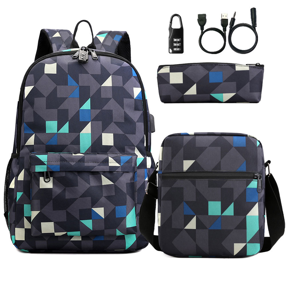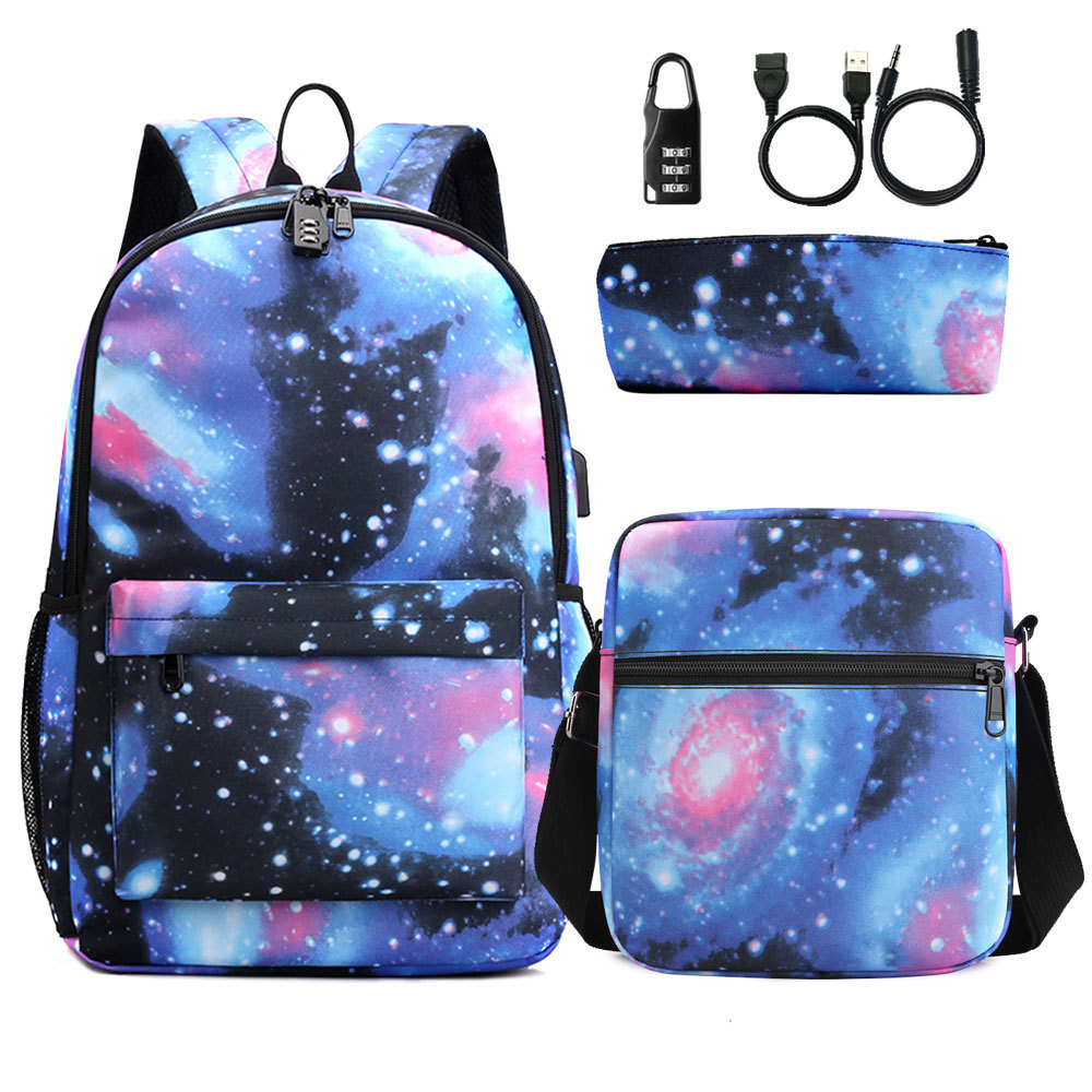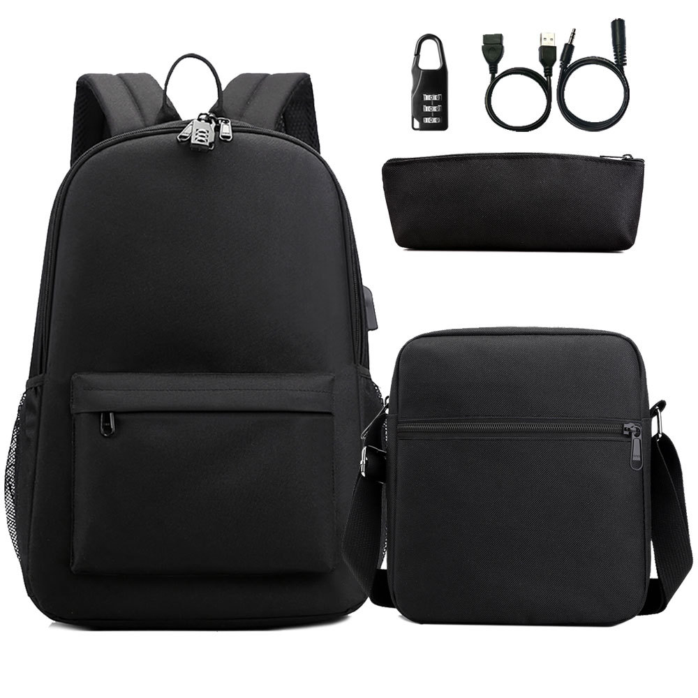 원피스 배포 새로운 USB 암호 잠금 십대 학생 책가방 쓰리피스 세트 남녀공용 배낭 세트