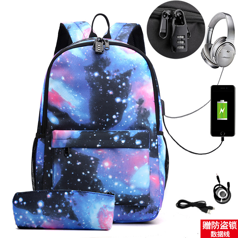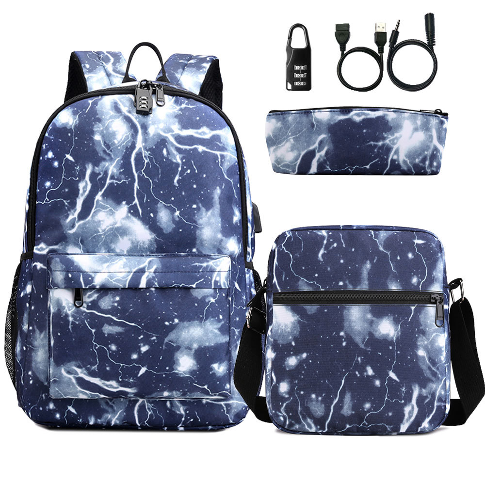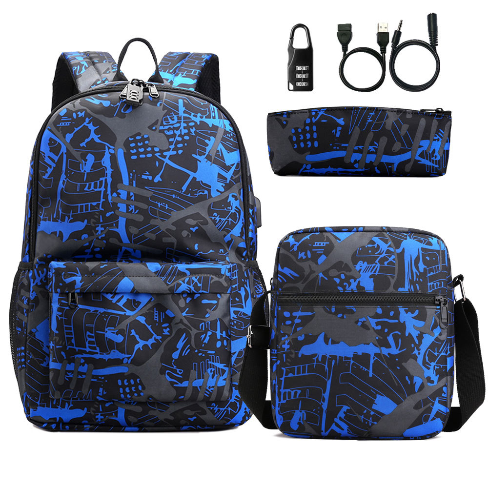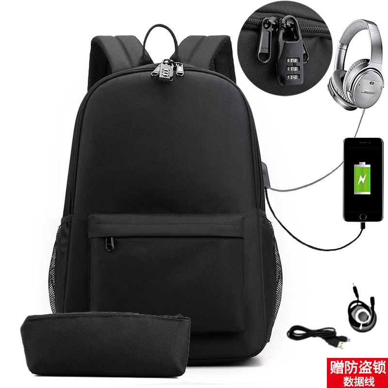 원피스 배포 새로운 USB 암호 잠금 십대 학생 책가방 쓰리피스 세트 남녀공용 배낭 세트