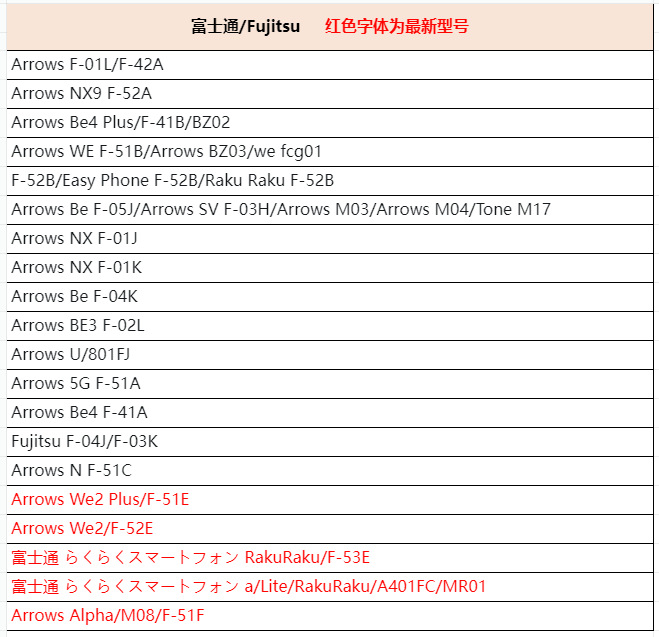 • Arrows Be F-05J/Arrows Sv F-03H/M03/M04/Tone M17