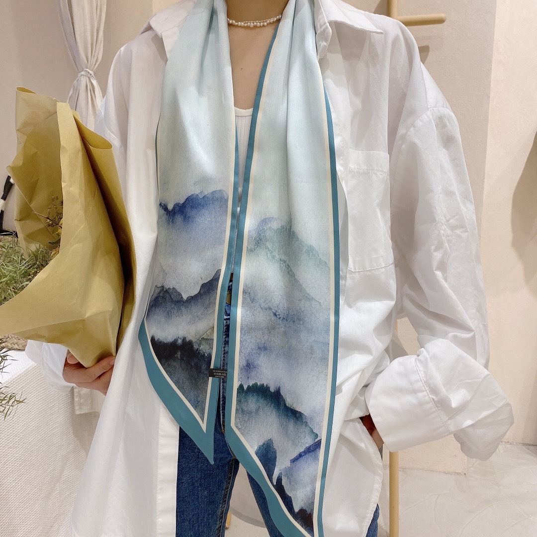 새로운 봄 작은 실크 스카프 얇은 좁은 긴 여자의 한국 모든 일치 장식 스카프 한국식 헤어 밴드 리본 유행스토어 가기