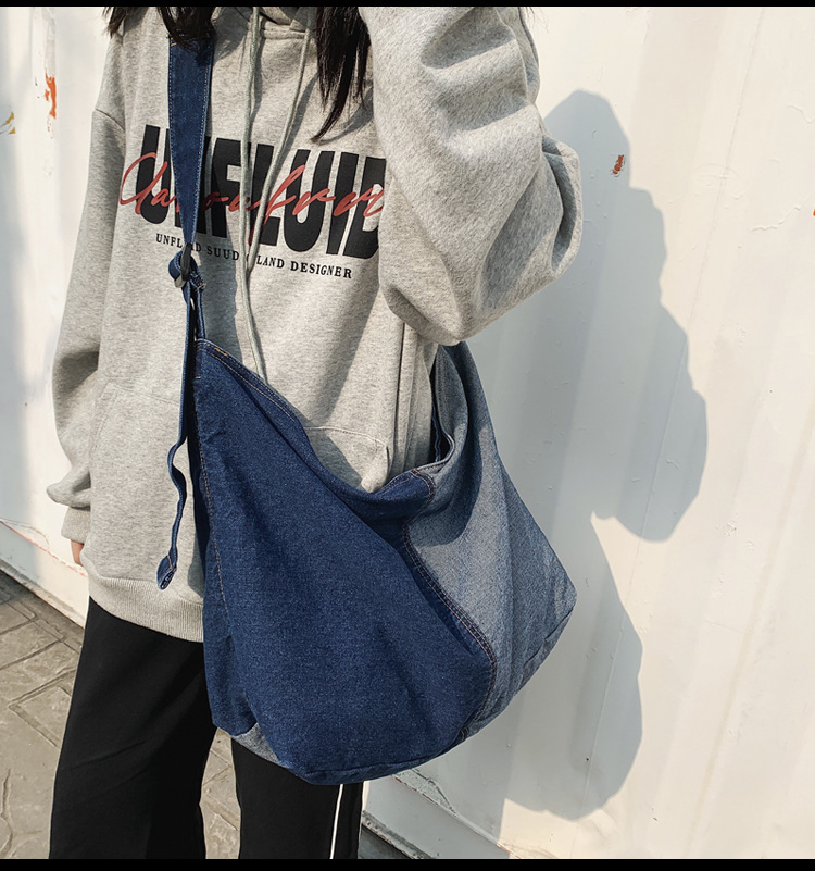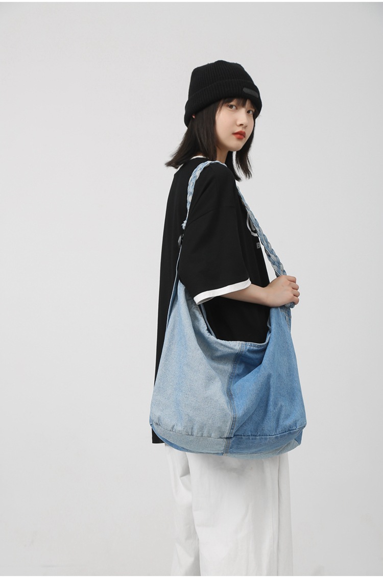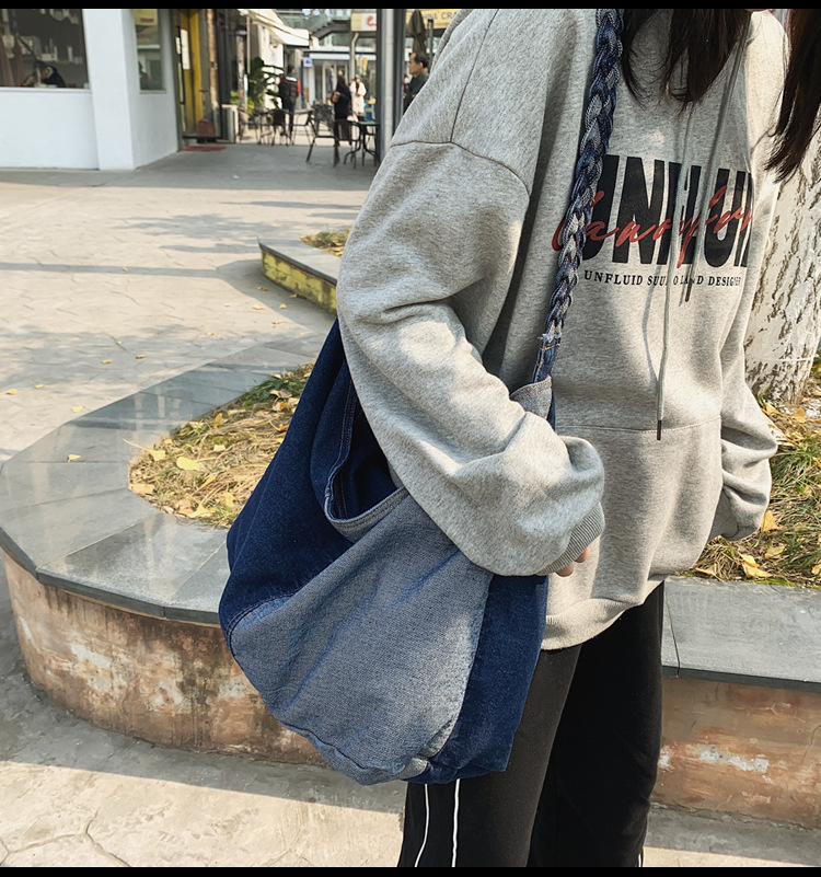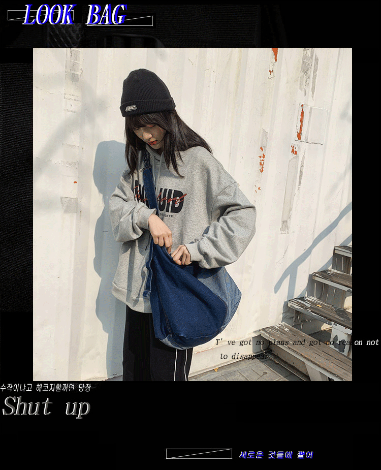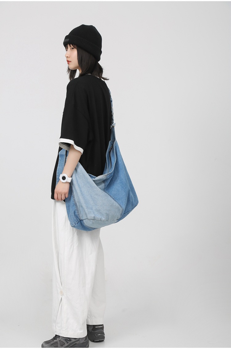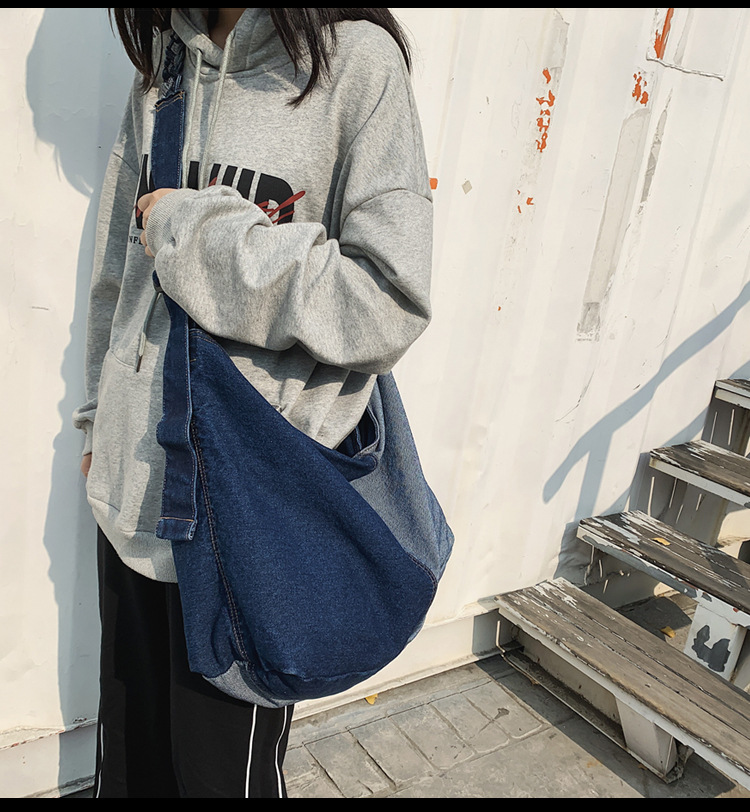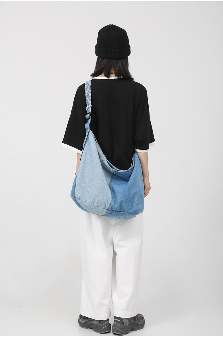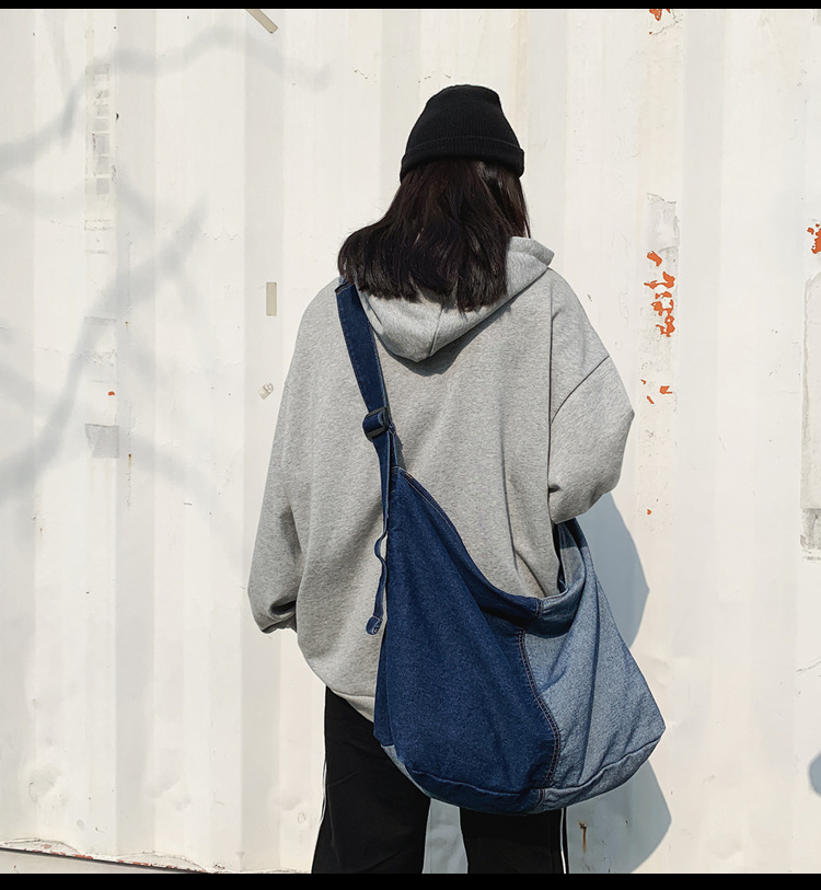컬러블록 데님 크로스백 여성용 레이지 스타일 대용량 숄더백 예술 학생 백팩 스타일 다용도스토어 가기