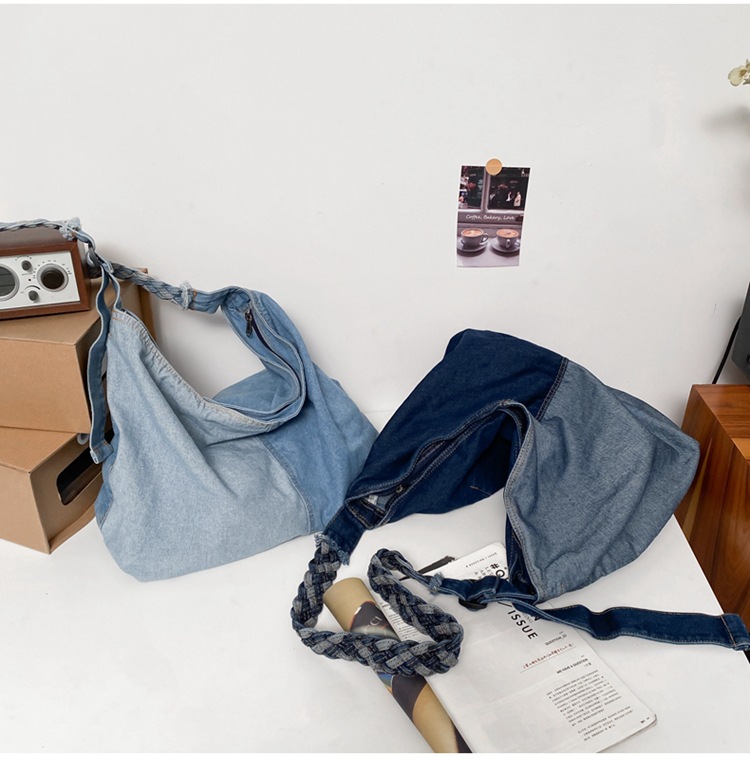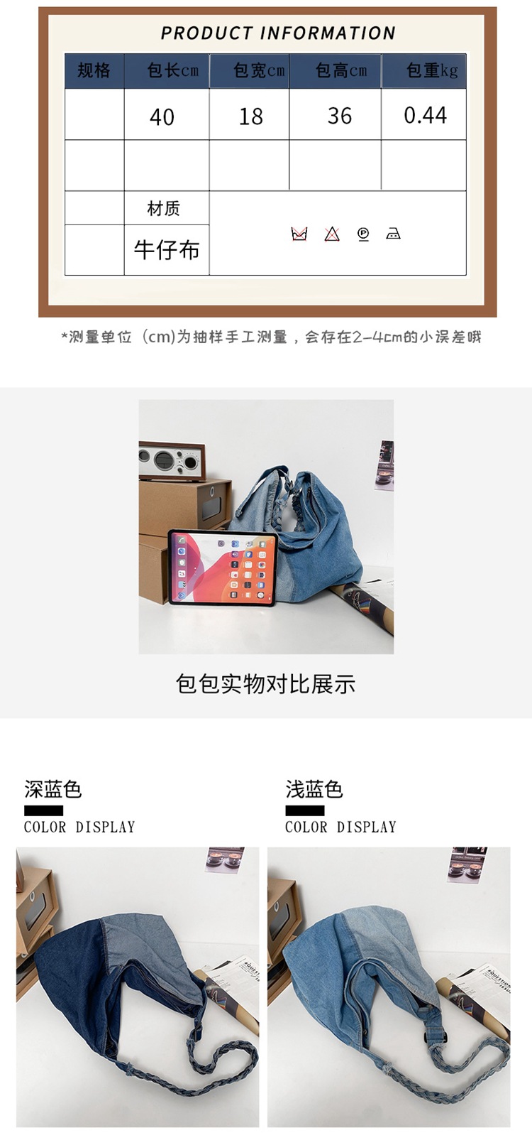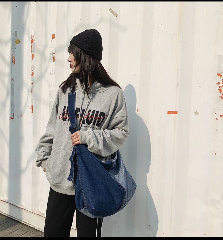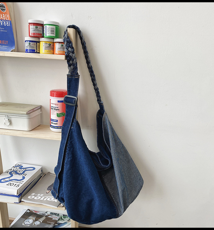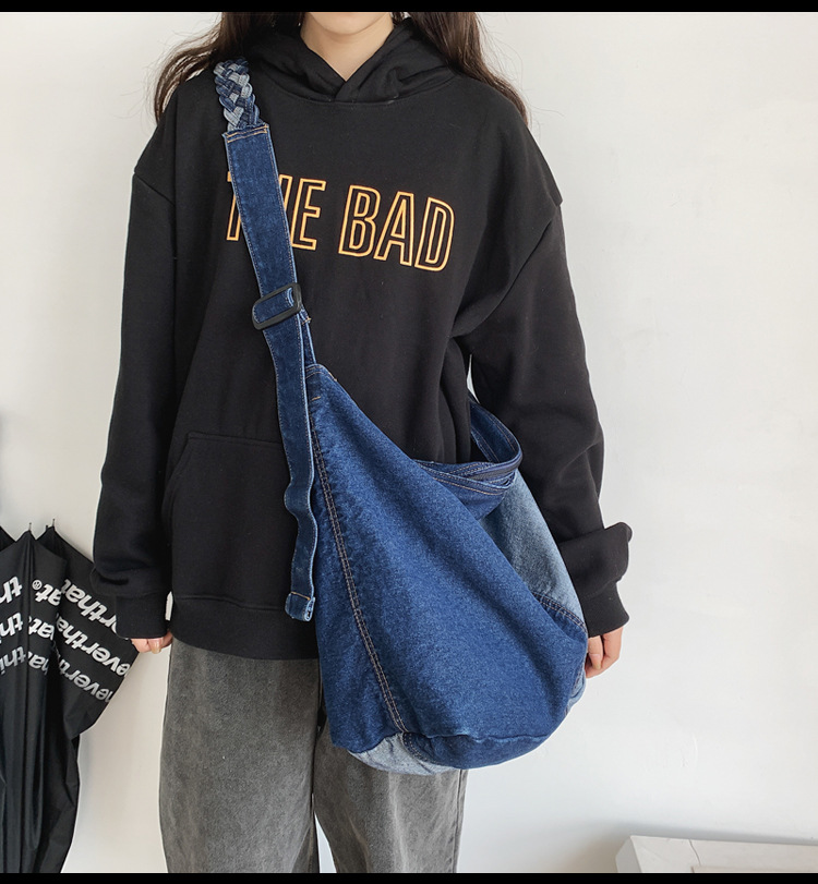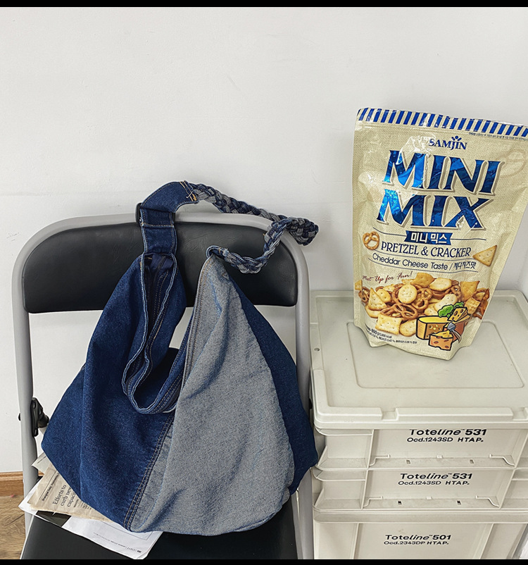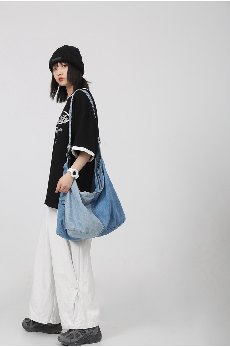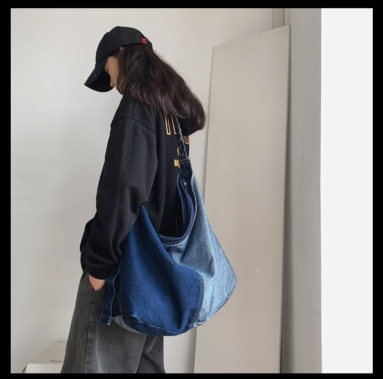 컬러블록 데님 크로스백 여성용 레이지 스타일 대용량 숄더백 예술 학생 백팩 스타일 다용도스토어 가기