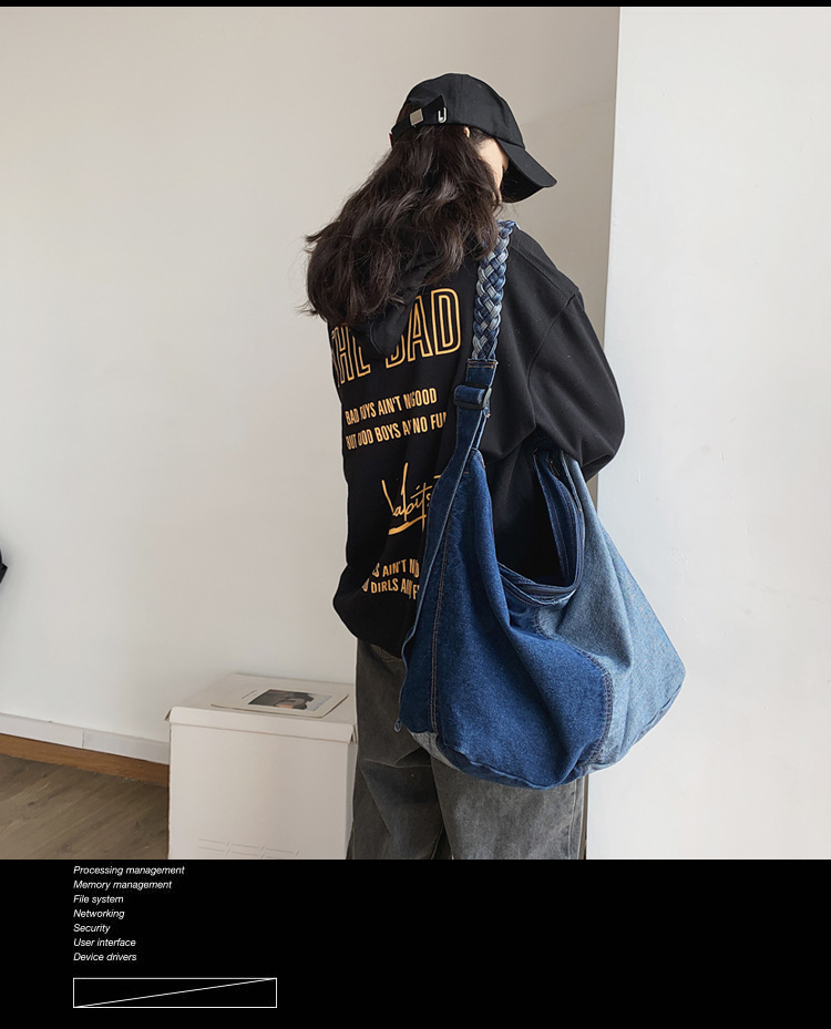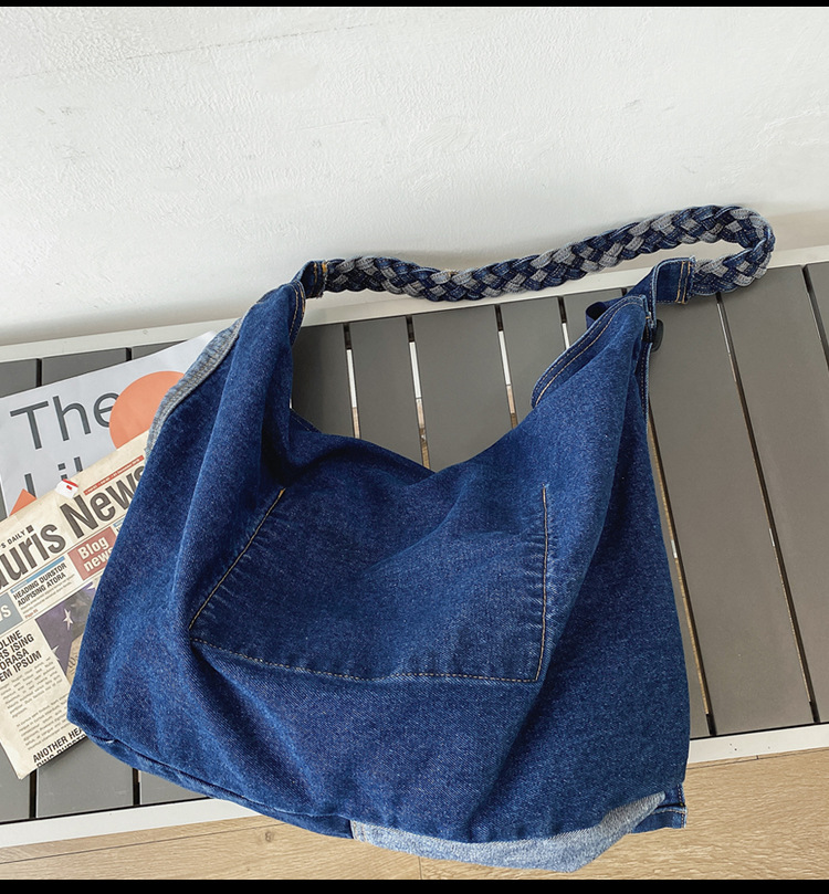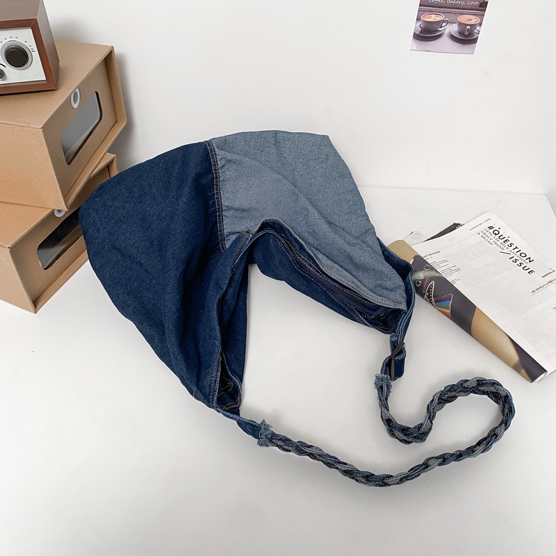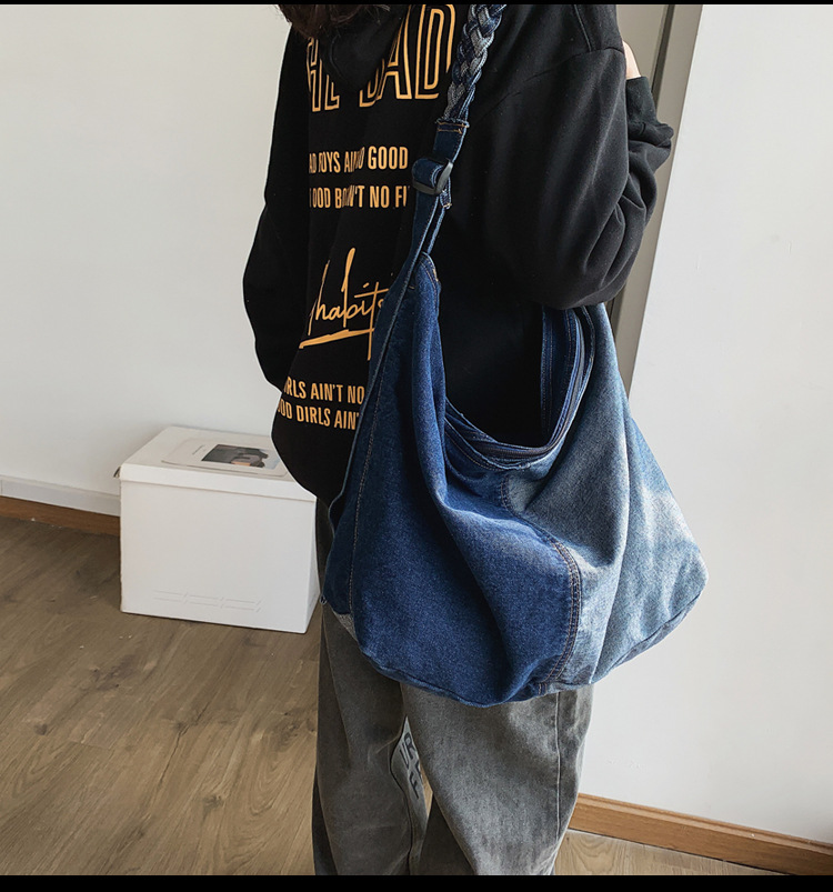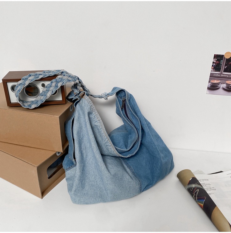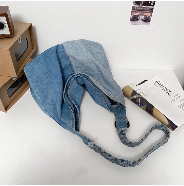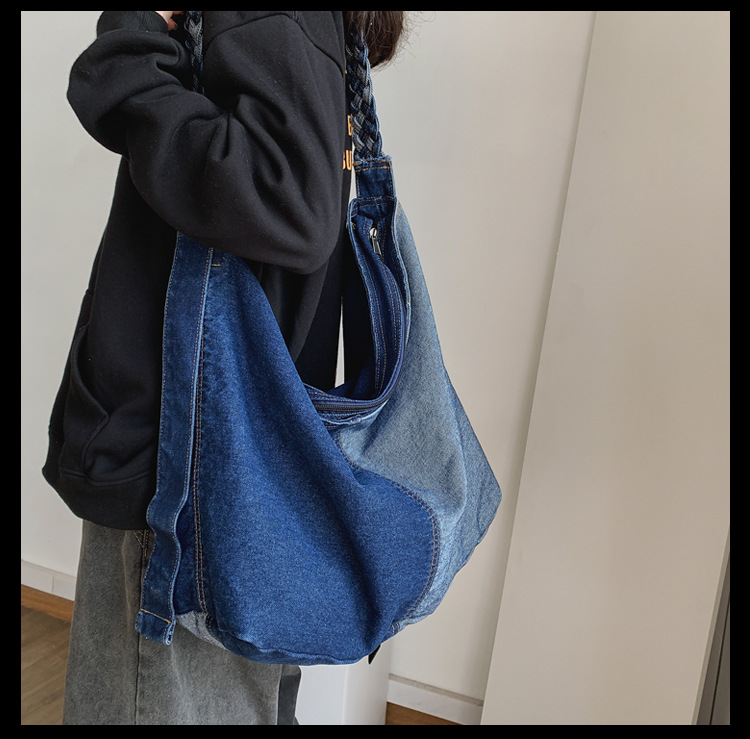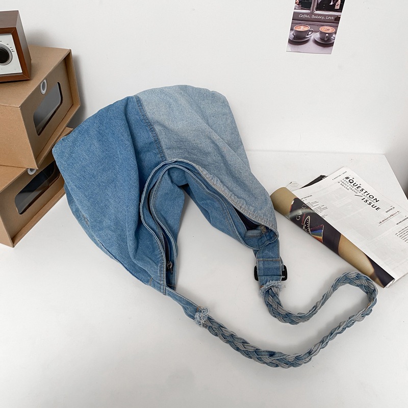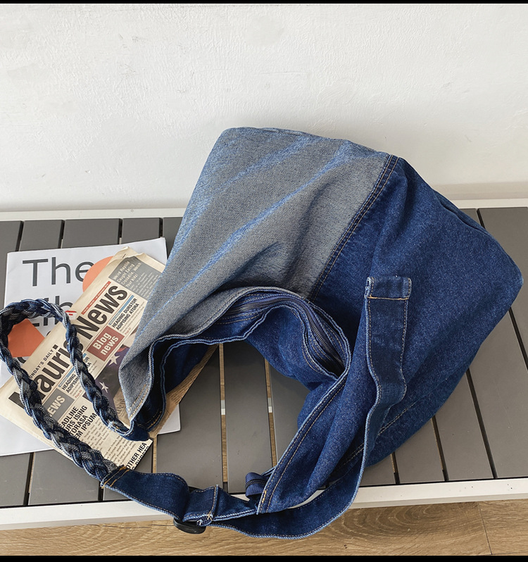 컬러블록 데님 크로스백 여성용 레이지 스타일 대용량 숄더백 예술 학생 백팩 스타일 다용도스토어 가기