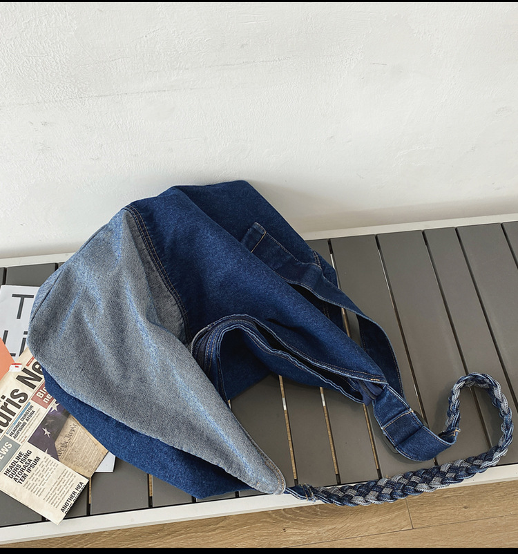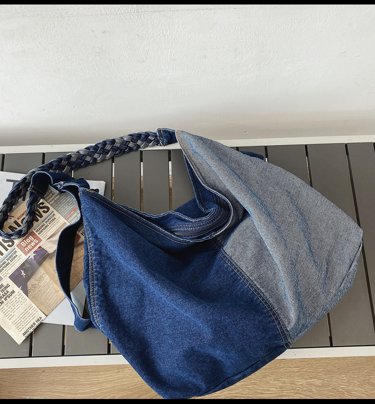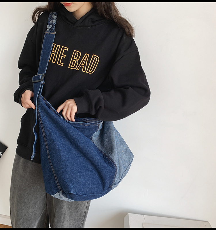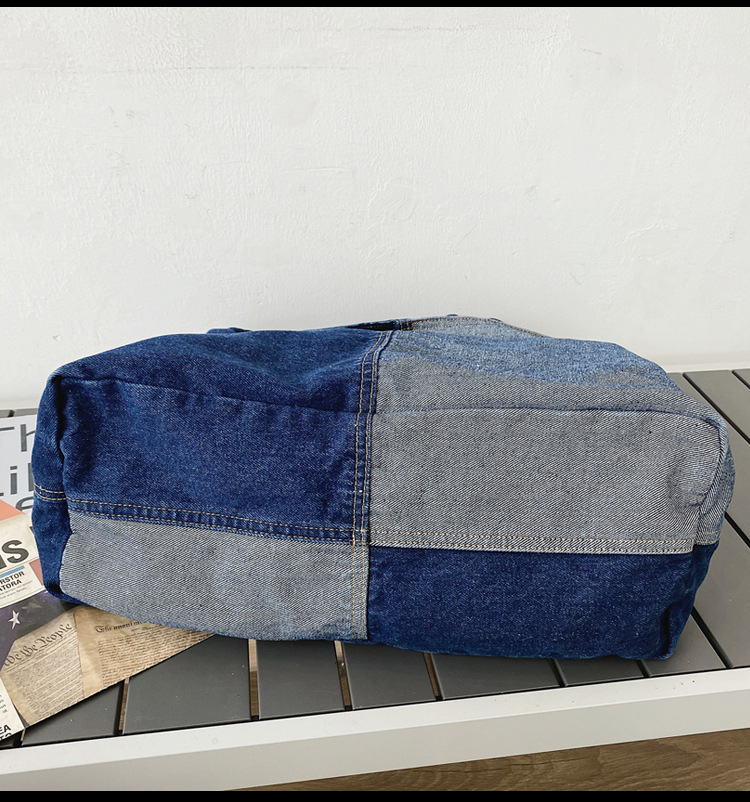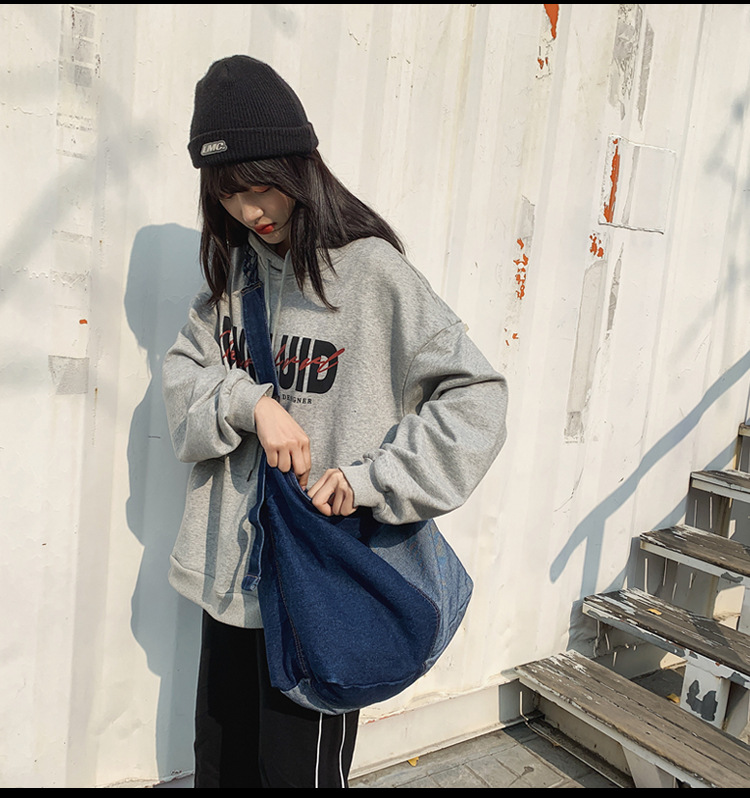 컬러블록 데님 크로스백 여성용 레이지 스타일 대용량 숄더백 예술 학생 백팩 스타일 다용도