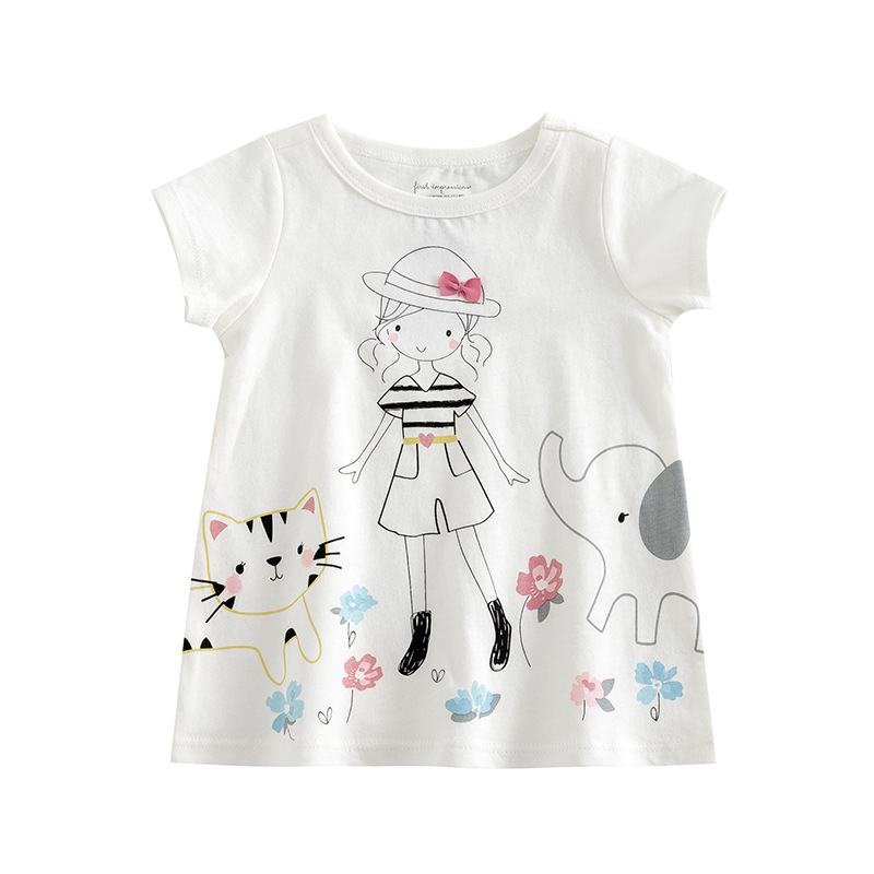 유럽풍 프린트 달콤한 상의 1234세 신상 아기 이너웨어 부드러운 만화 소녀 티셔츠 여름 반팔스토어 가기