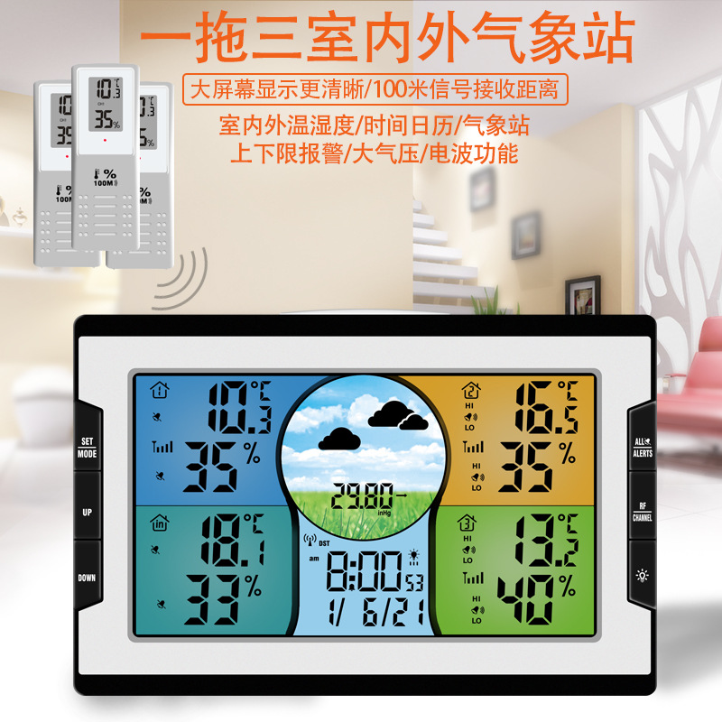 跨境新款 四通道室内外多功能彩屏气象钟