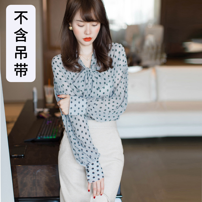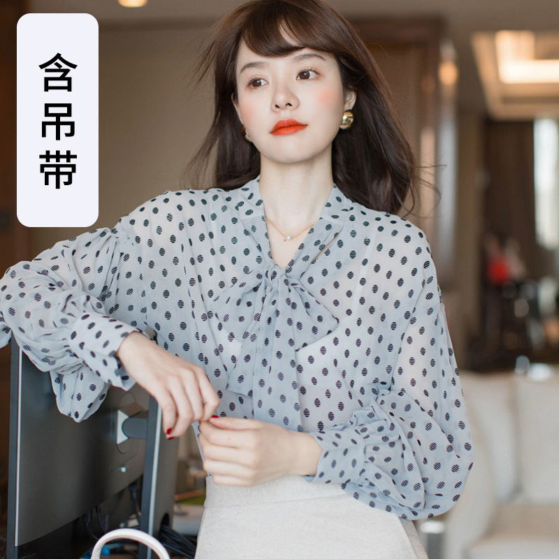 프렌치 슬림 플로킹 셔츠 여성의 디자인 감각 틈새 랜턴 슬리브 통근 보우 셔츠 레트로 우아한 탑