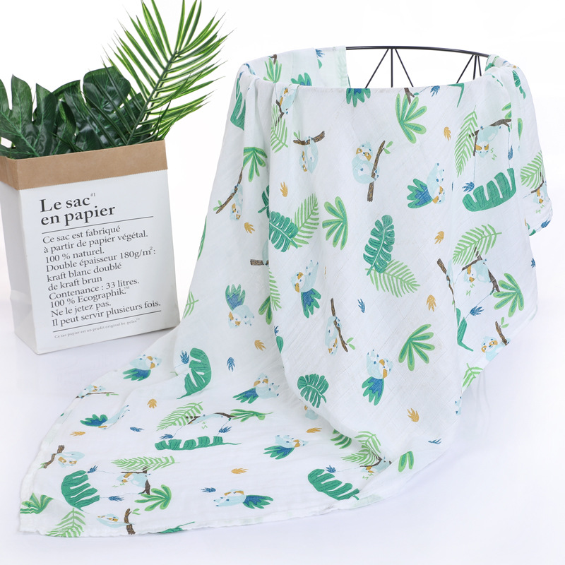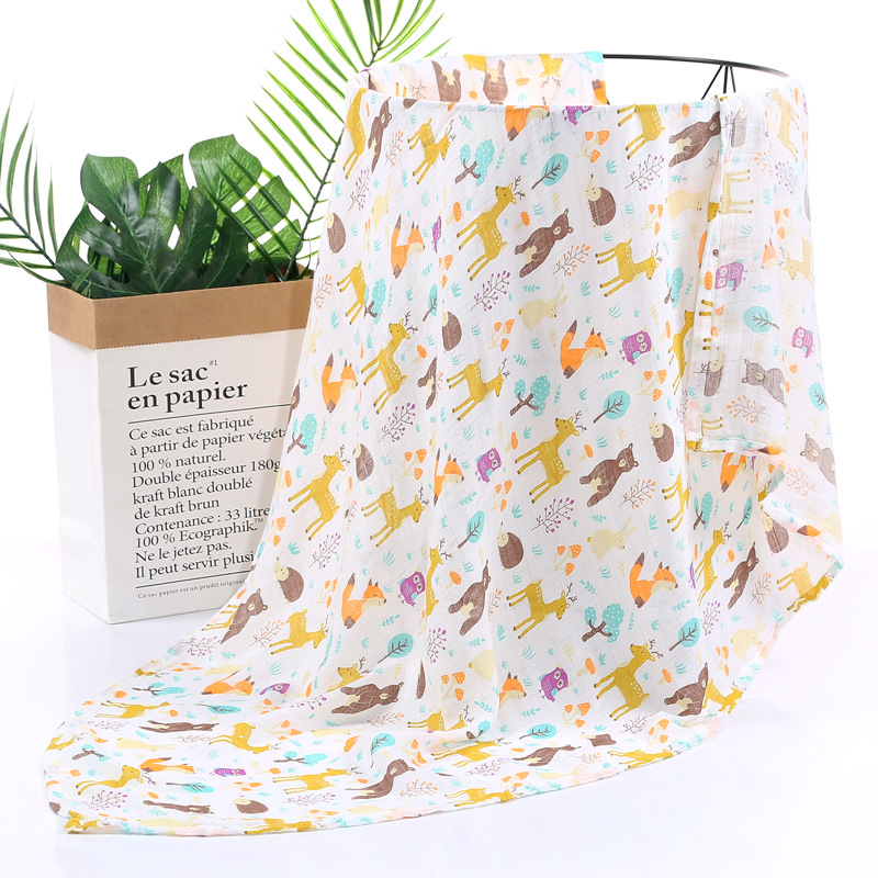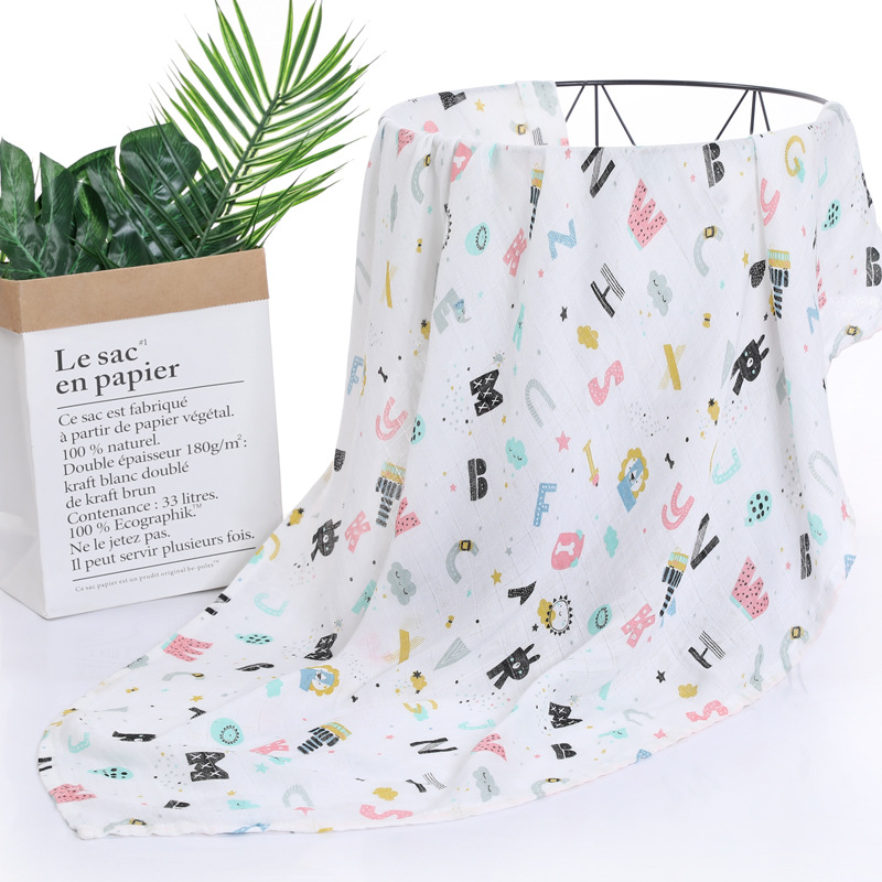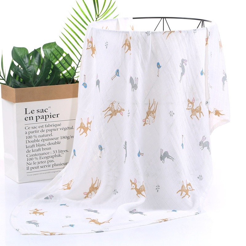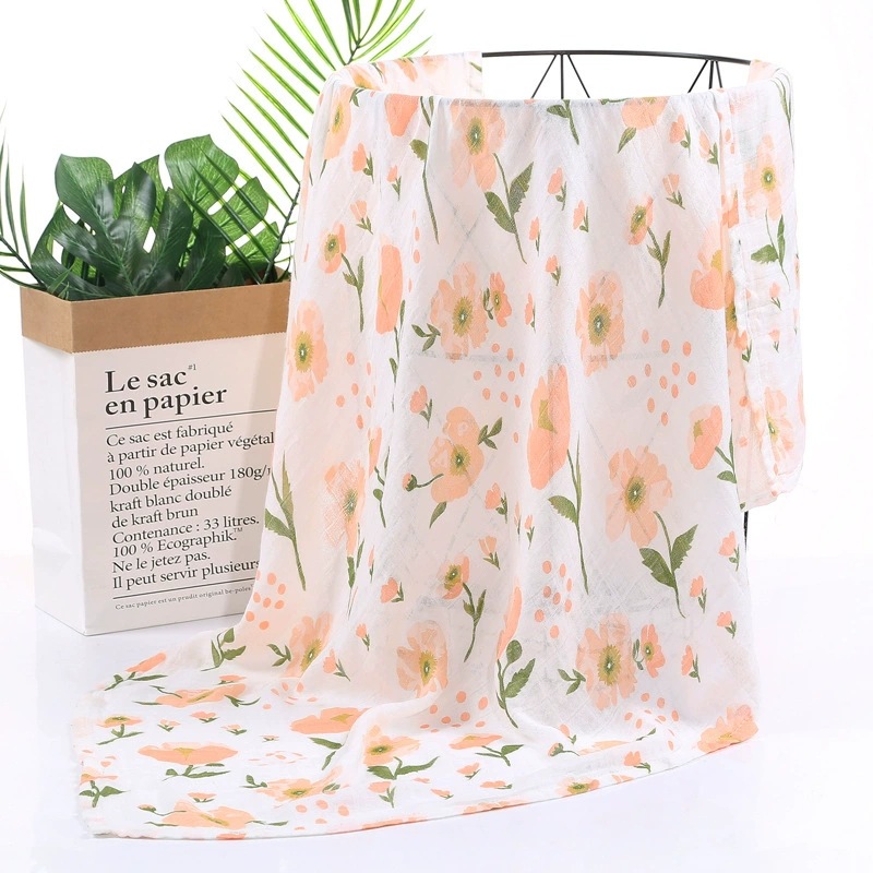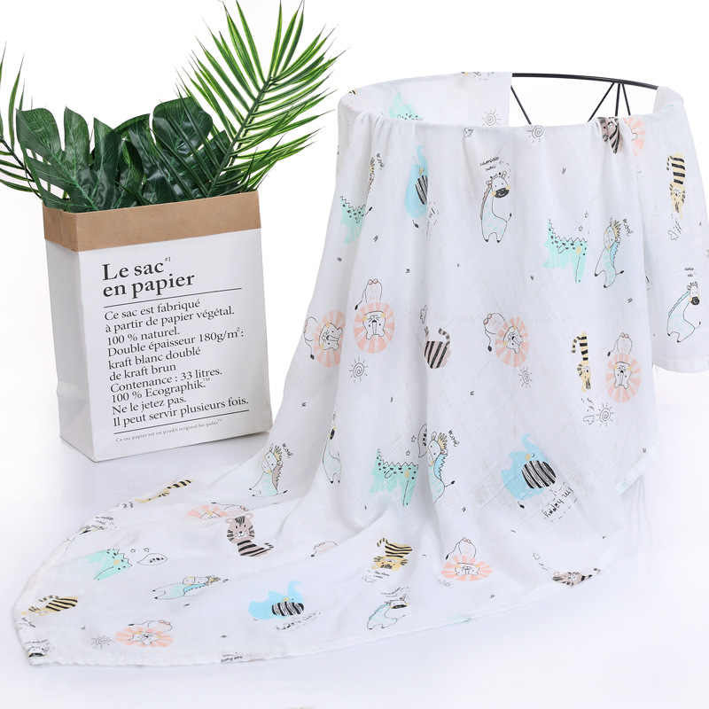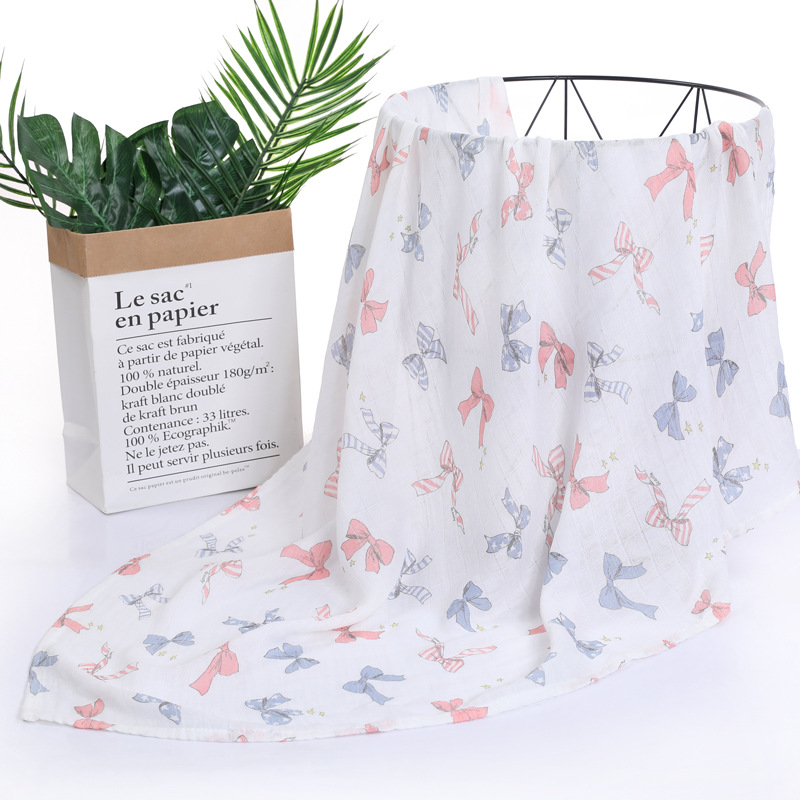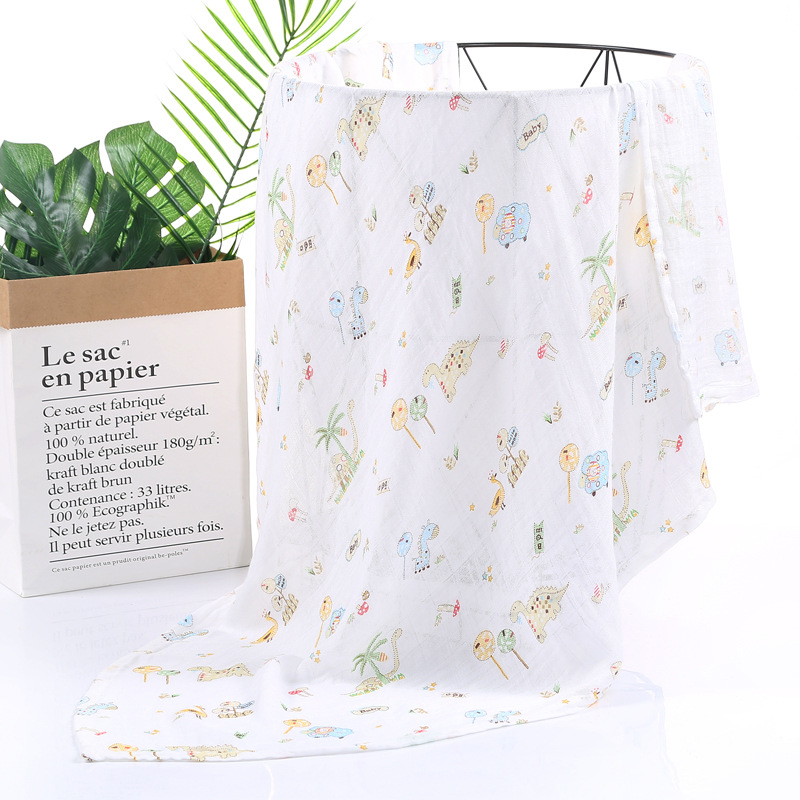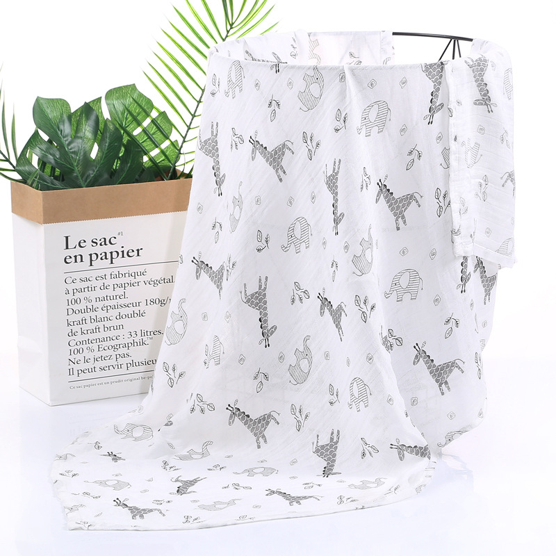 대나무 면 랩 타월 흰색 바닥 인쇄 더블 거즈 도매 신생아 봄과 여름 랩 아기 랩 포대기 타월스토어 가기