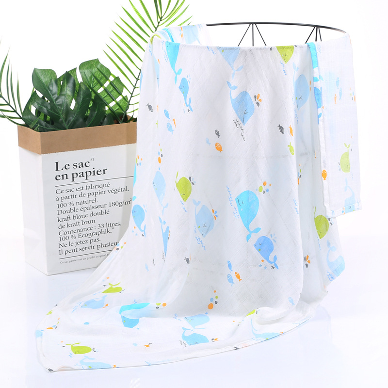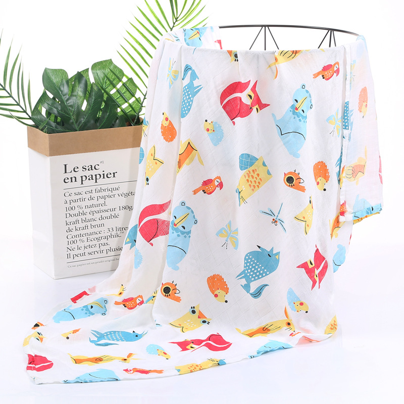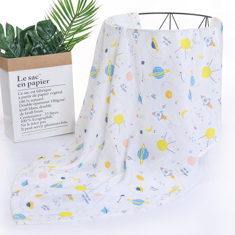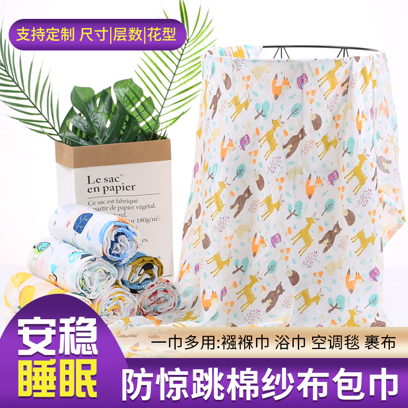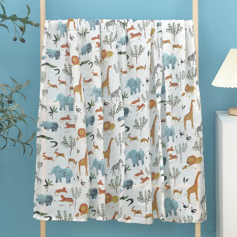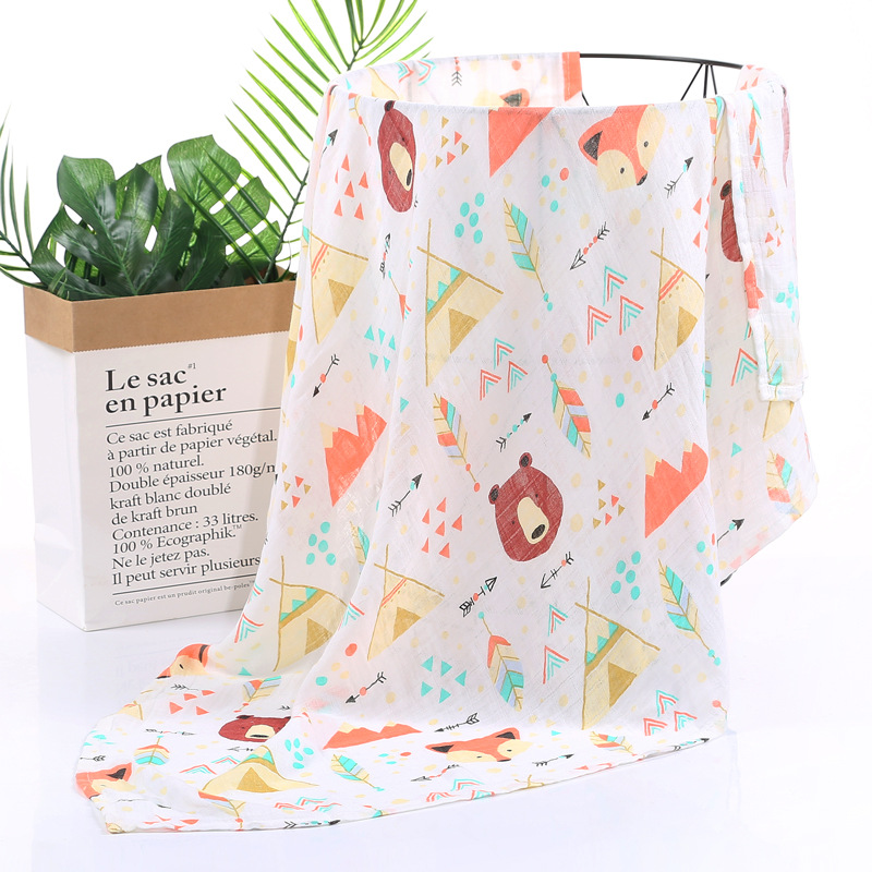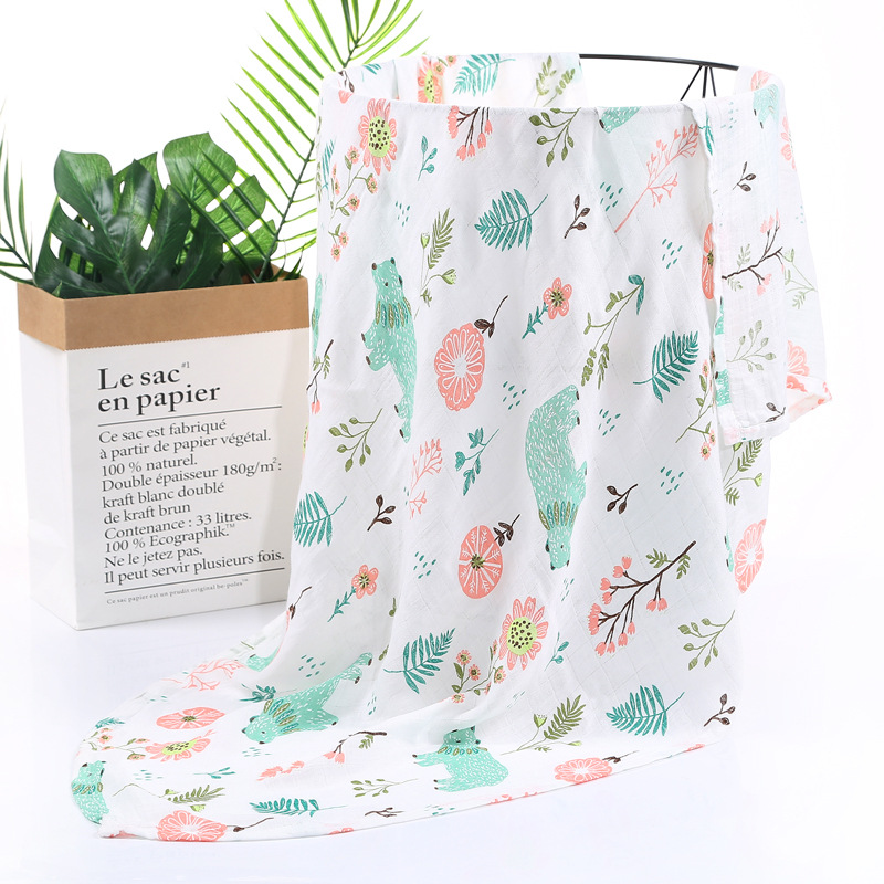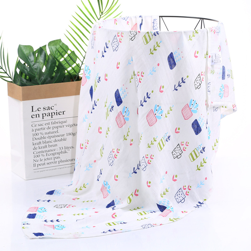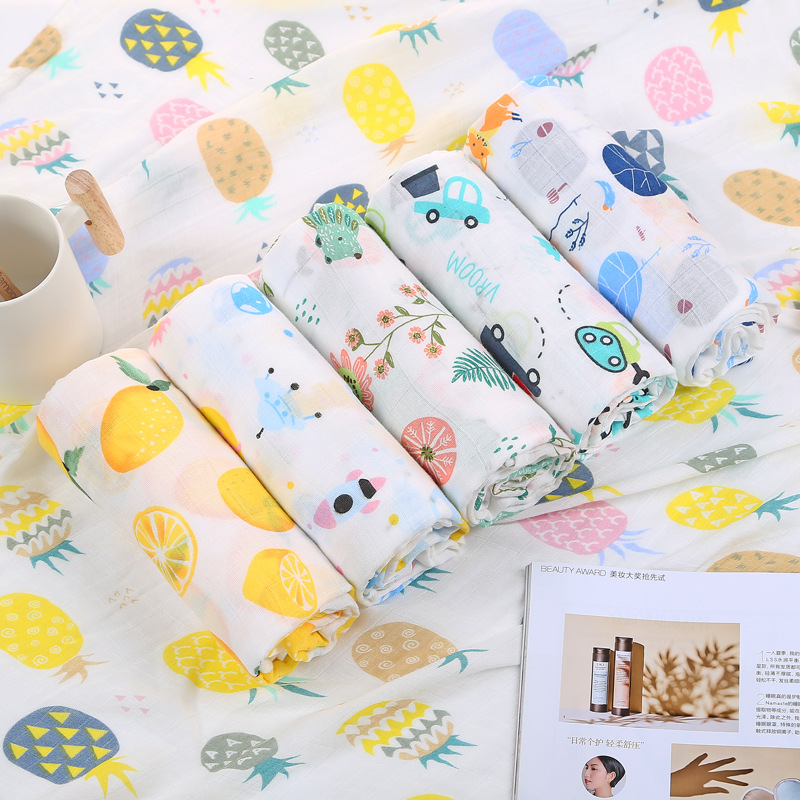 대나무 면 랩 타월 흰색 바닥 인쇄 더블 거즈 도매 신생아 봄과 여름 랩 아기 랩 포대기 타월스토어 가기