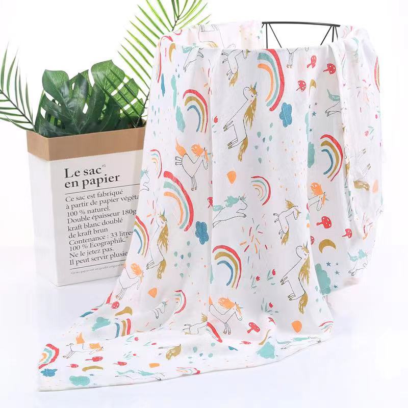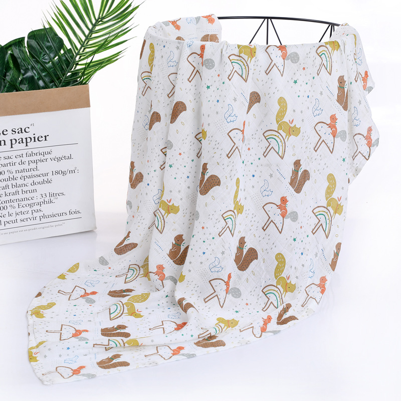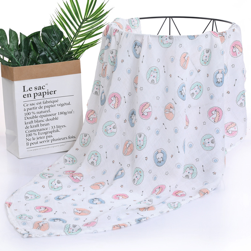 대나무 면 랩 타월 흰색 바닥 인쇄 더블 거즈 도매 신생아 봄과 여름 랩 아기 랩 포대기 타월