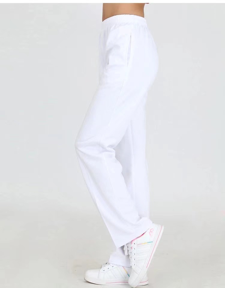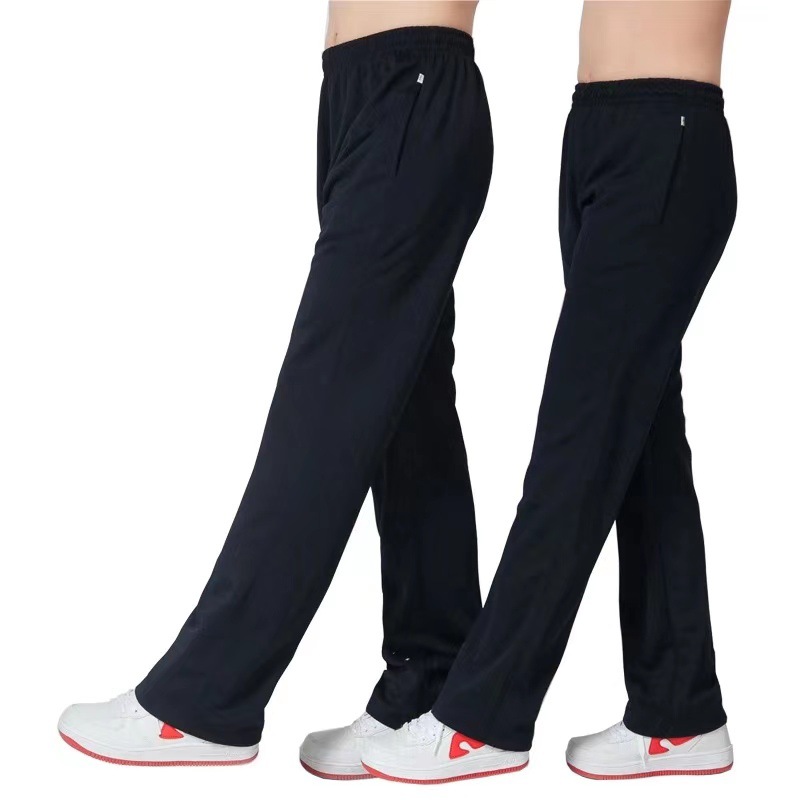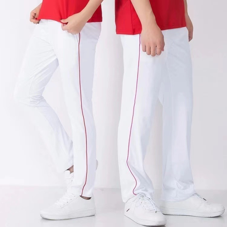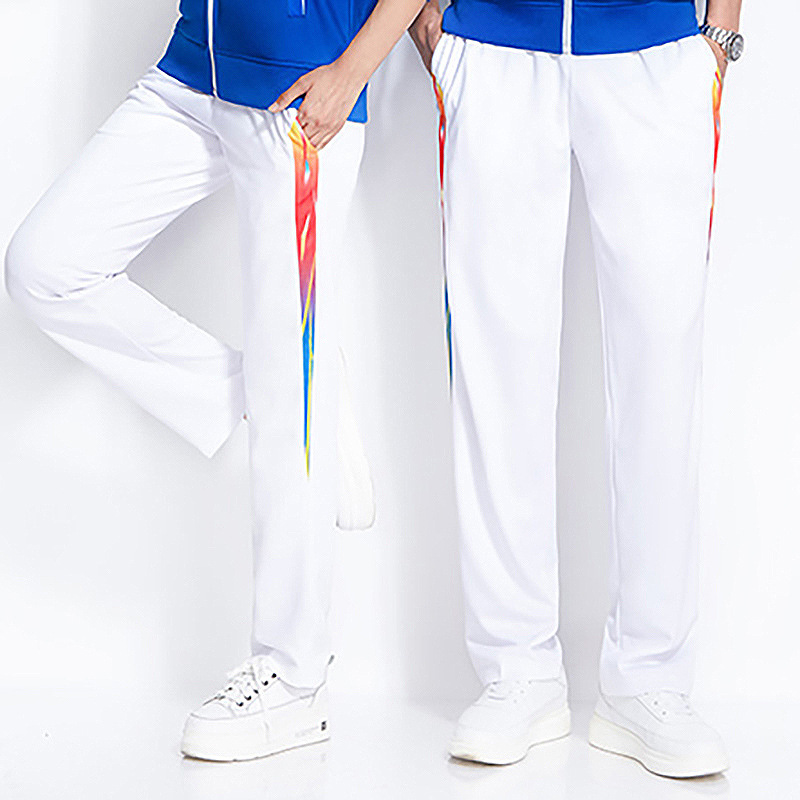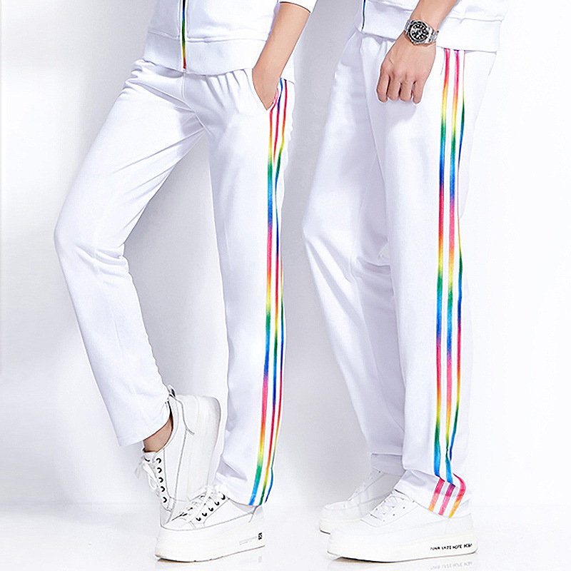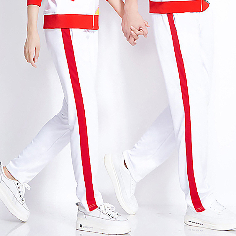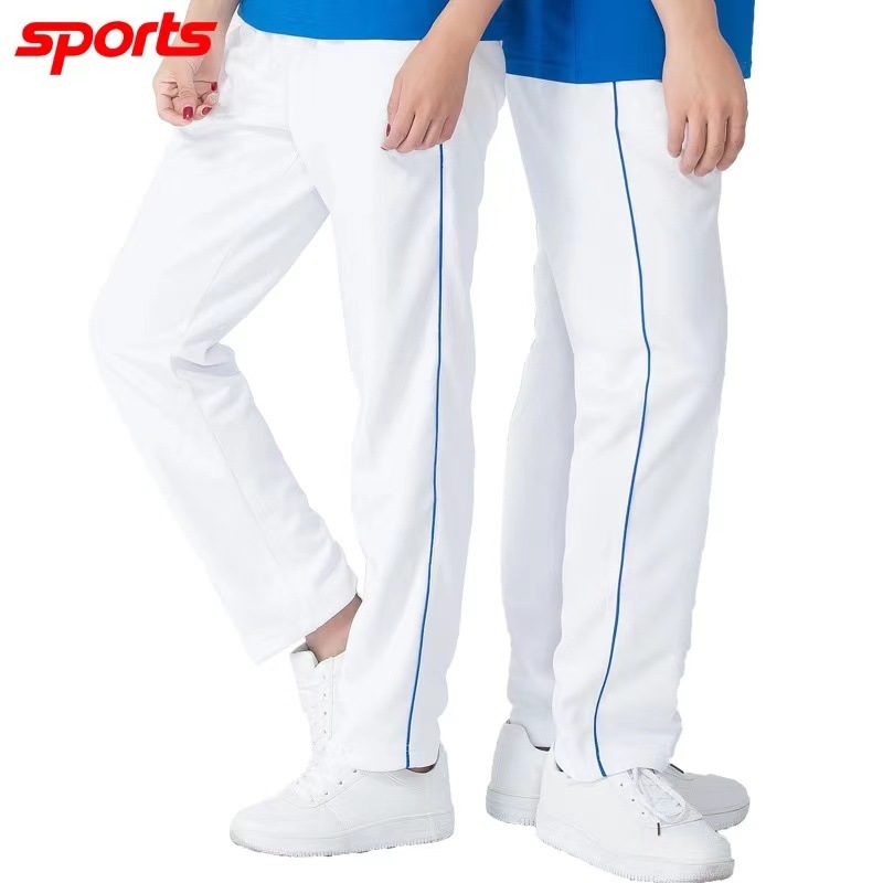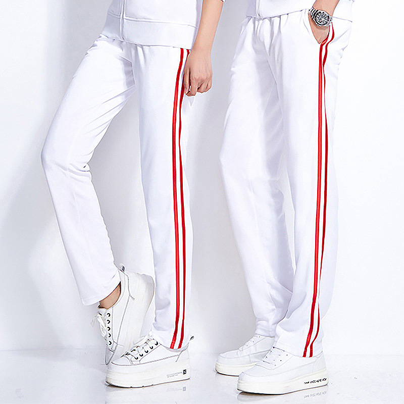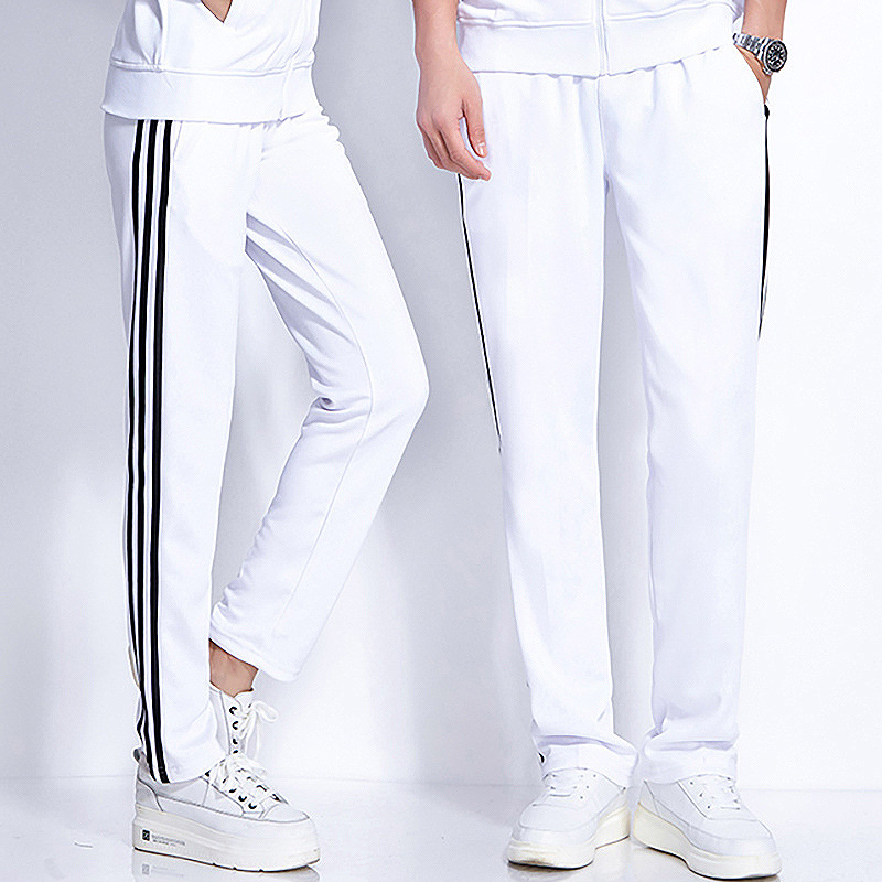 한국산 실크 화이트 스포츠 팬츠 여성용 긴바지 봄, 가을, 여름용 피트니스 바지 남성용 대형 사이즈 스트레이트 학교 바지 러닝용