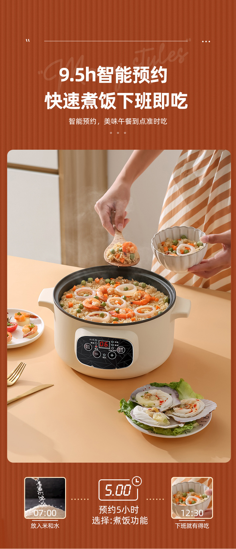 붙지 않는 내솥 전기밥솥 소형 학생 기숙사 튀김 튀김 샤브샤브 미니 다기능 전기밥솥 올인원 냄비