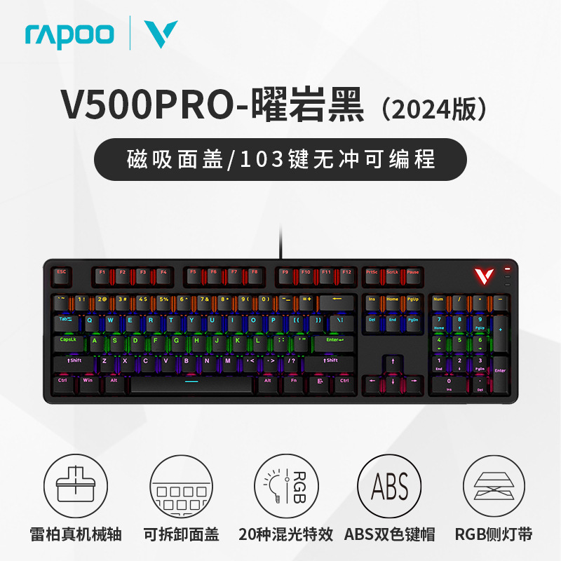 • 레드 축 [V500PRO-Obsidian 블랙] 전체 키 영향 없음, 103 키 사용자 정의, 혼합 색상 백라이트 (24 판)