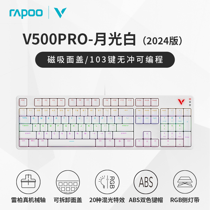 • 레드 축 [V500PRO-Moonlight 화이트] 전체 키 영향 없음, 103 키 사용자 정의, 혼합 색상 백라이트 (24 판)