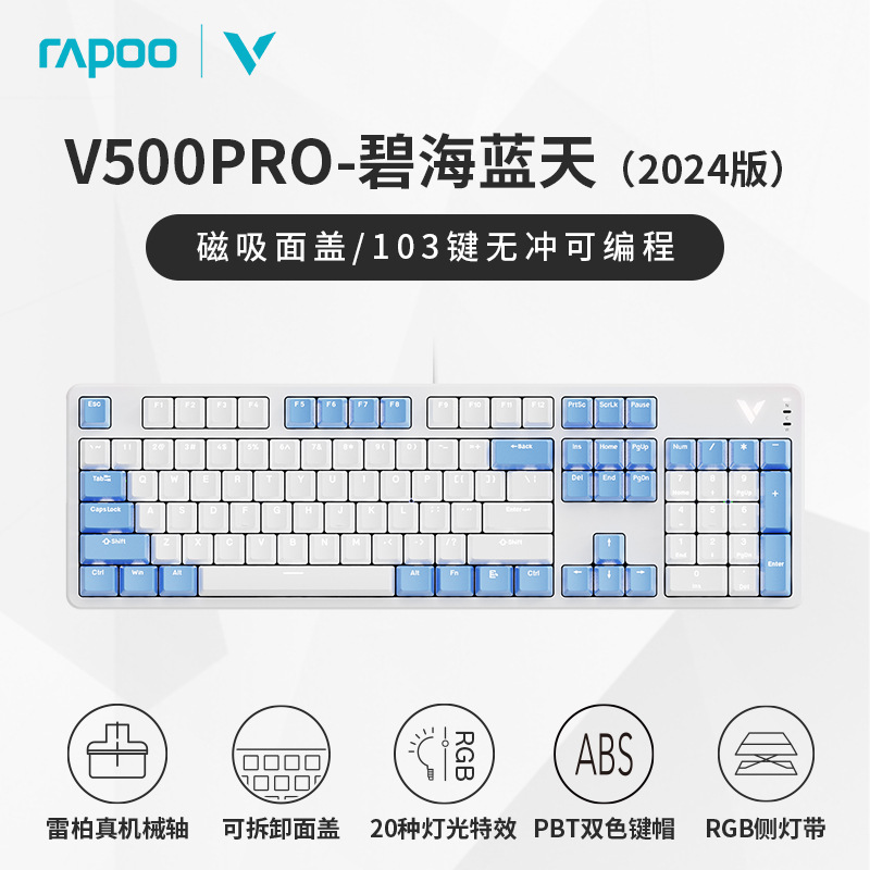 • 빠른 실버 축 [V500PRO-blue 바다와 푸른 하늘] 전체 키 영향 없음★103 키 사용자 정의★백색 빛 (버전 24)