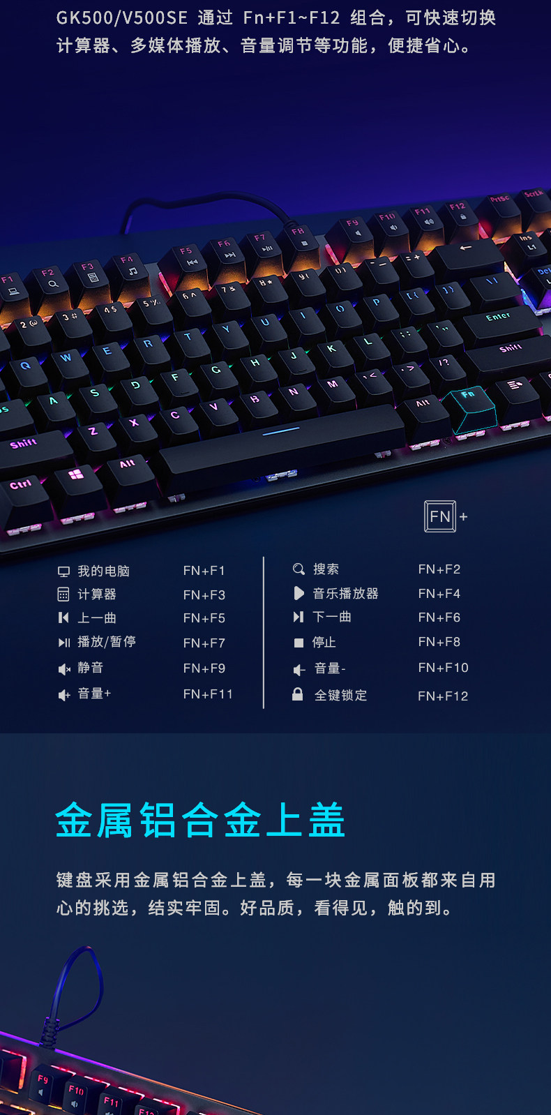 • 녹색 축 [V500PRO-Obsidian 블랙] 전체 키 영향 없음, 103 키 사용자 정의, 혼합 색상 백라이트 (24 판)