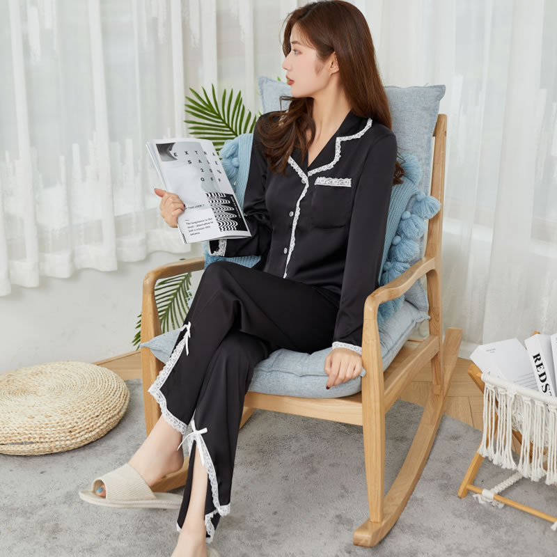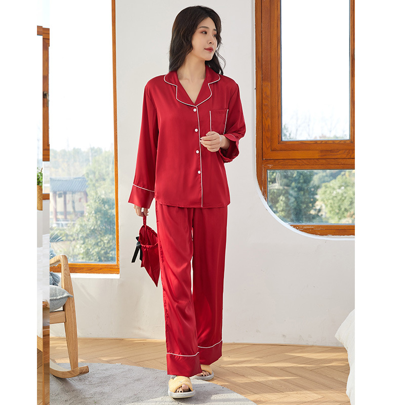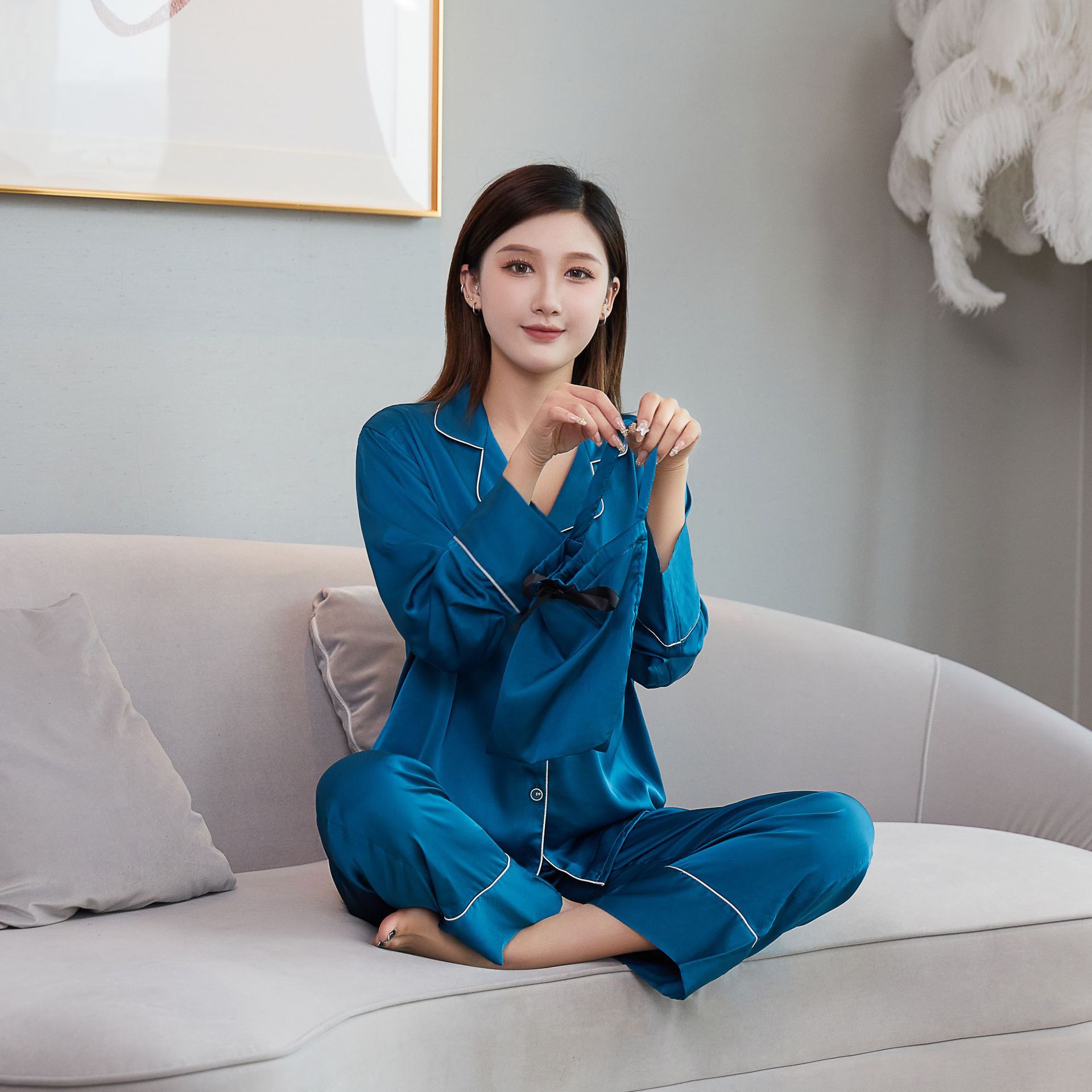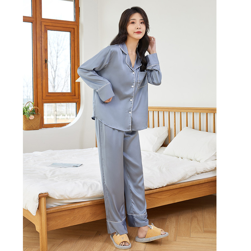 여성용 고급 잠옷, 새로운 아이스 실크 요정 스타일 긴팔 가디건 세트, 인터넷 인기 라이브 방송용 단색 홈웨어, 라이트 럭셔리스토어 가기