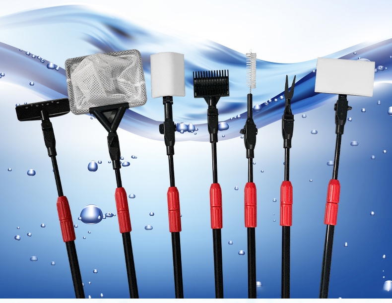 새로운 어항 브러시 청소 세트 6-in-one 7-in-one 텔레스코픽 긴 손잡이 조류 긁기 칼 어항 도구 물 잔디 클립스토어 가기