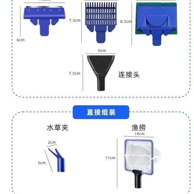 새로운 어항 브러시 청소 세트 6-in-one 7-in-one 텔레스코픽 긴 손잡이 조류 긁기 칼 어항 도구 물 잔디 클립