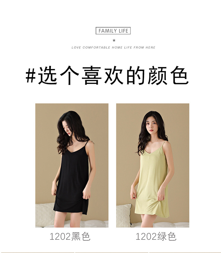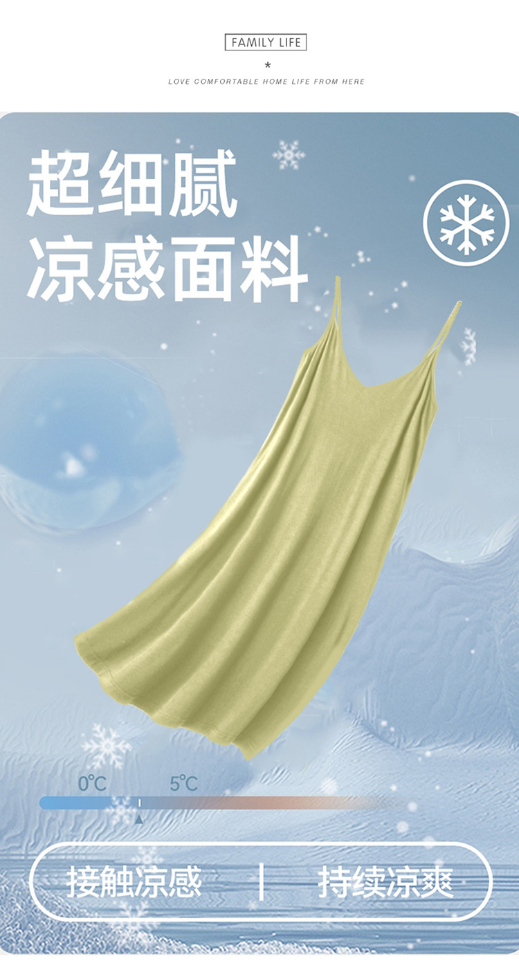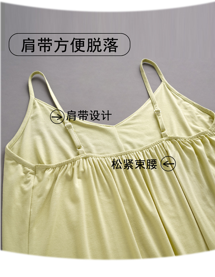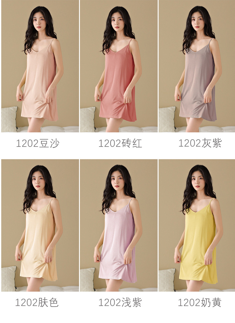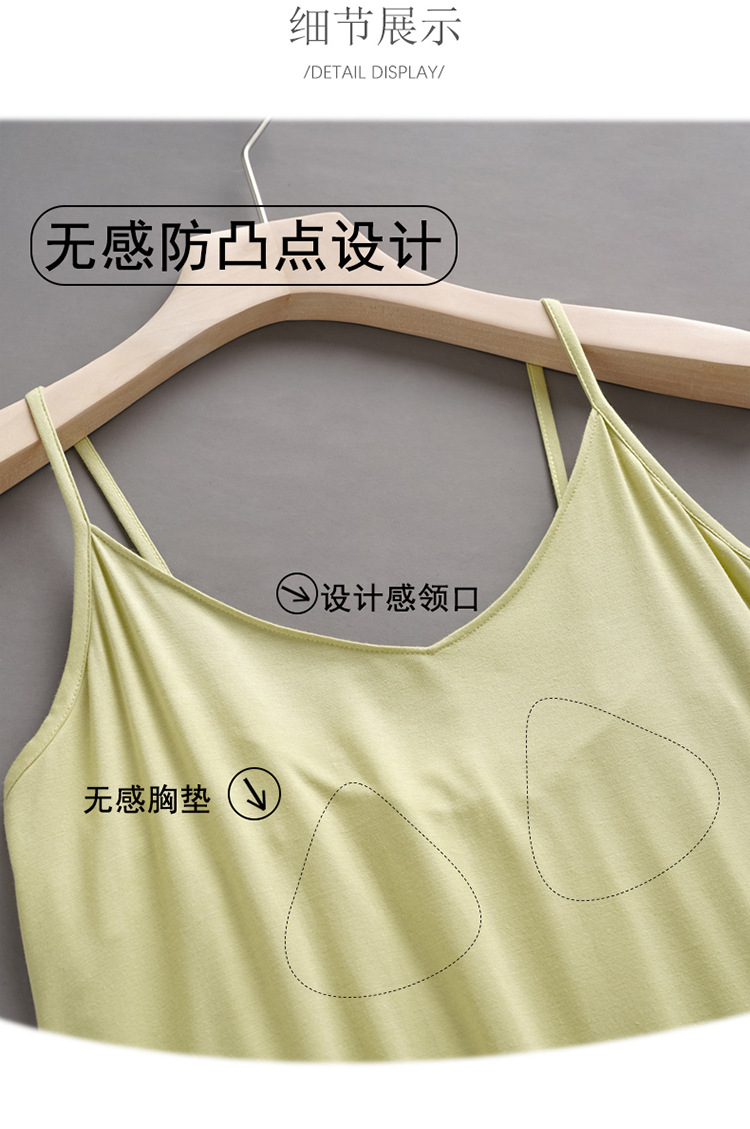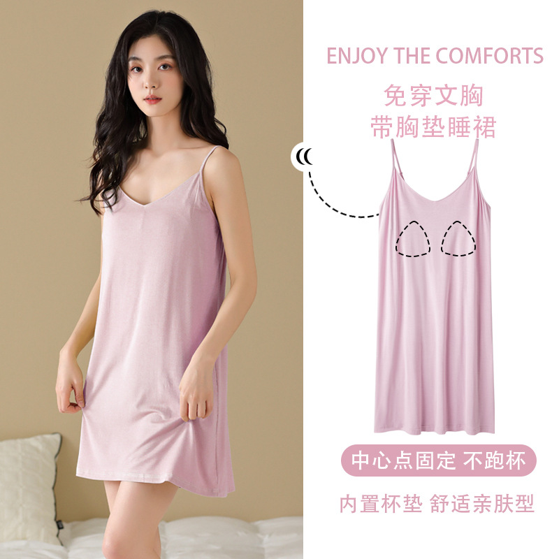 여학생을 위한 여름 편안하고 통기성 좋은 면 실크 서스펜더 스커트, 가슴 패드가 있는 여성용 순수한 섹시 스타일 모란디 컬러 잠옷스토어 가기