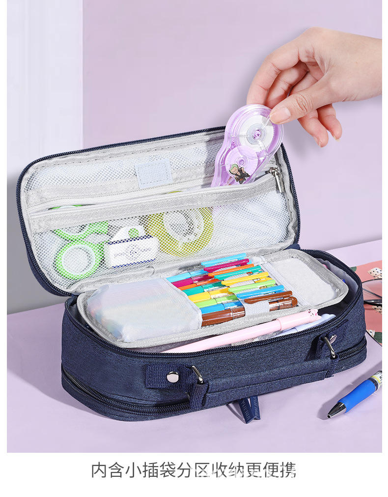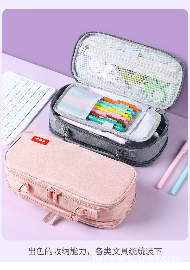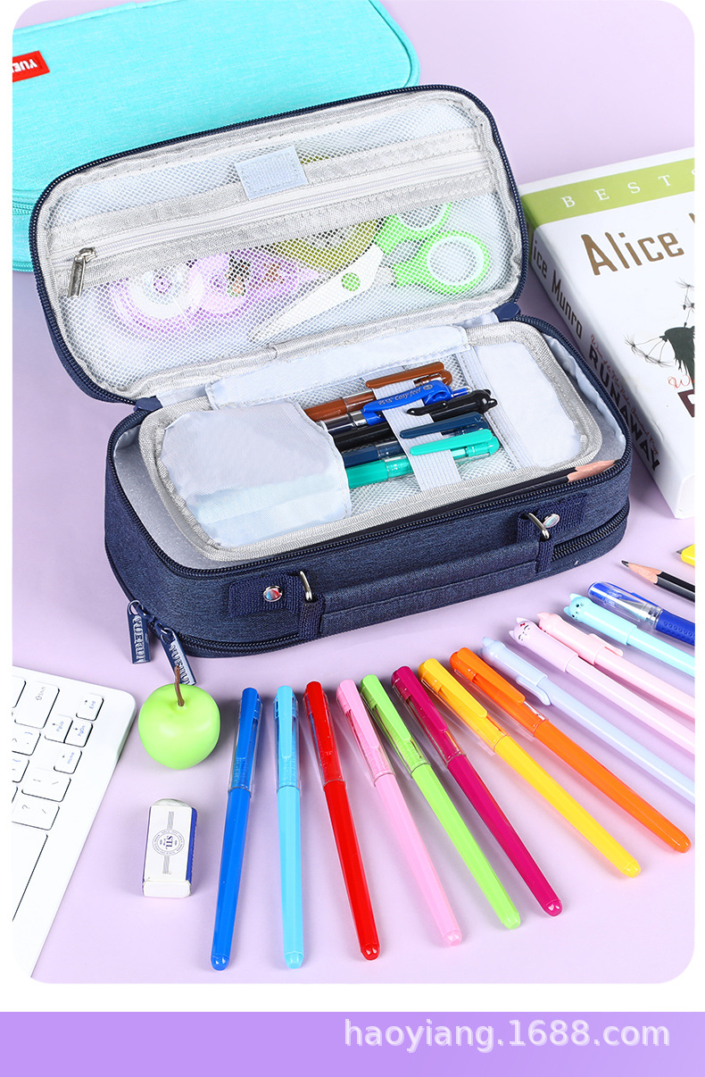 대용량 필통, 초중등학생용 문구류 수납 가방, 휴대용, 이중 지퍼, 다기능 필통, 한국 스타일스토어 가기