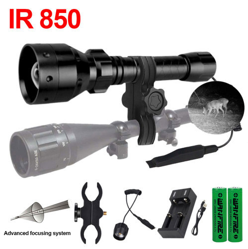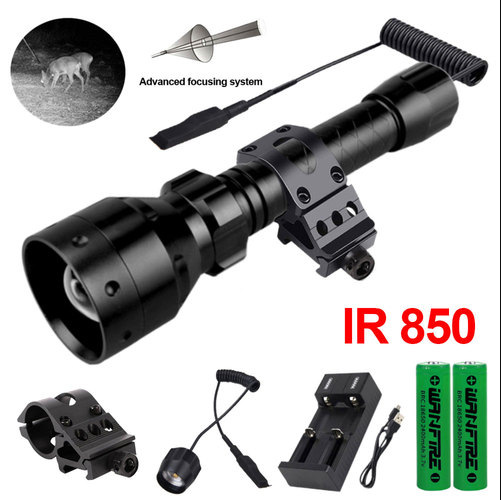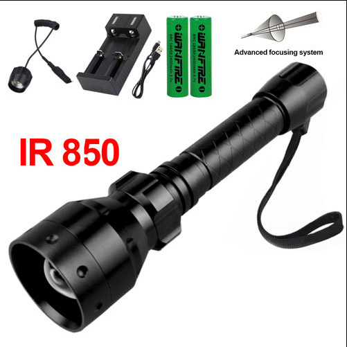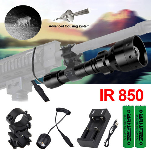 • 10W 850nm 적외선 손전등 2 배터리 2 슬롯 충전기 압력 스위치 45 도 클립