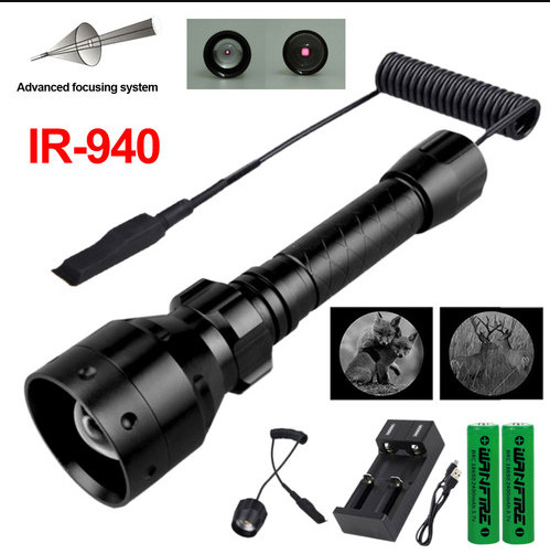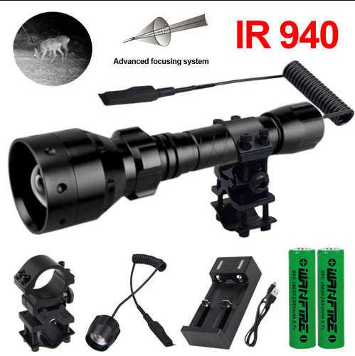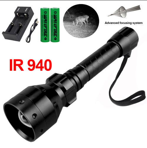 • 10W 940nm 적외선 손전등 2 배터리 2 슬롯 충전기 압력 스위치 45 도 클립