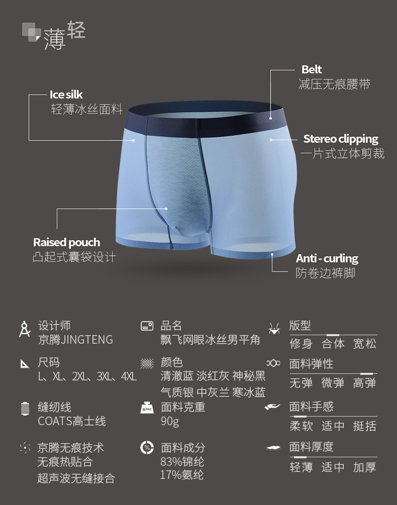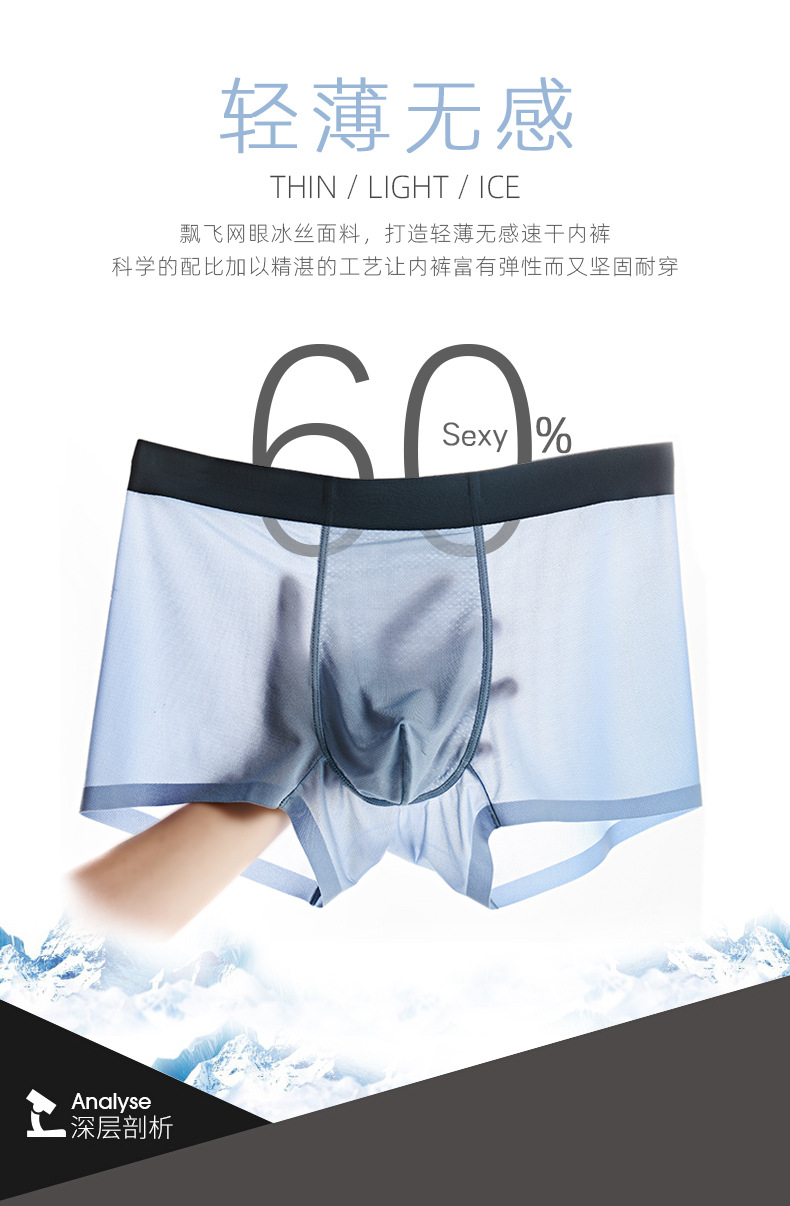 시원하고 가벼운 얼음 실크 남성 속옷, 맞춤형 플로팅 및 트레이스리스 남성용 복서 팬티, 중급 및 고급 소스 제조업체스토어 가기