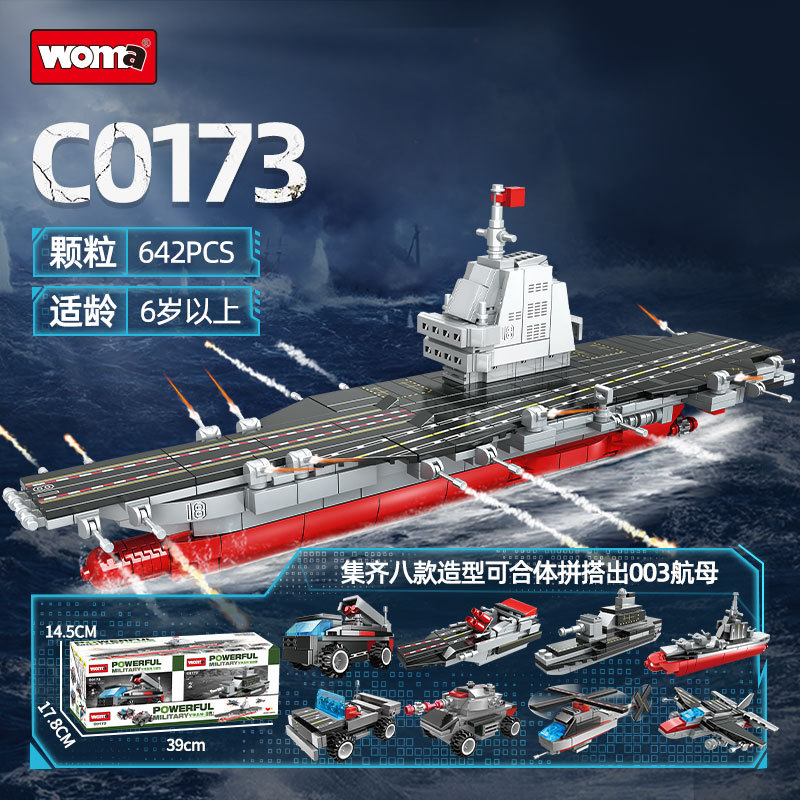Woma 새로운 장난감 빌딩 블록 어린이 조립 소년 군함 세계 항공 모함 소형 입자 모델 생성스토어 가기