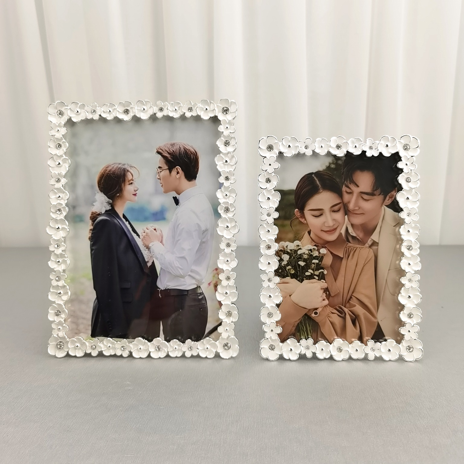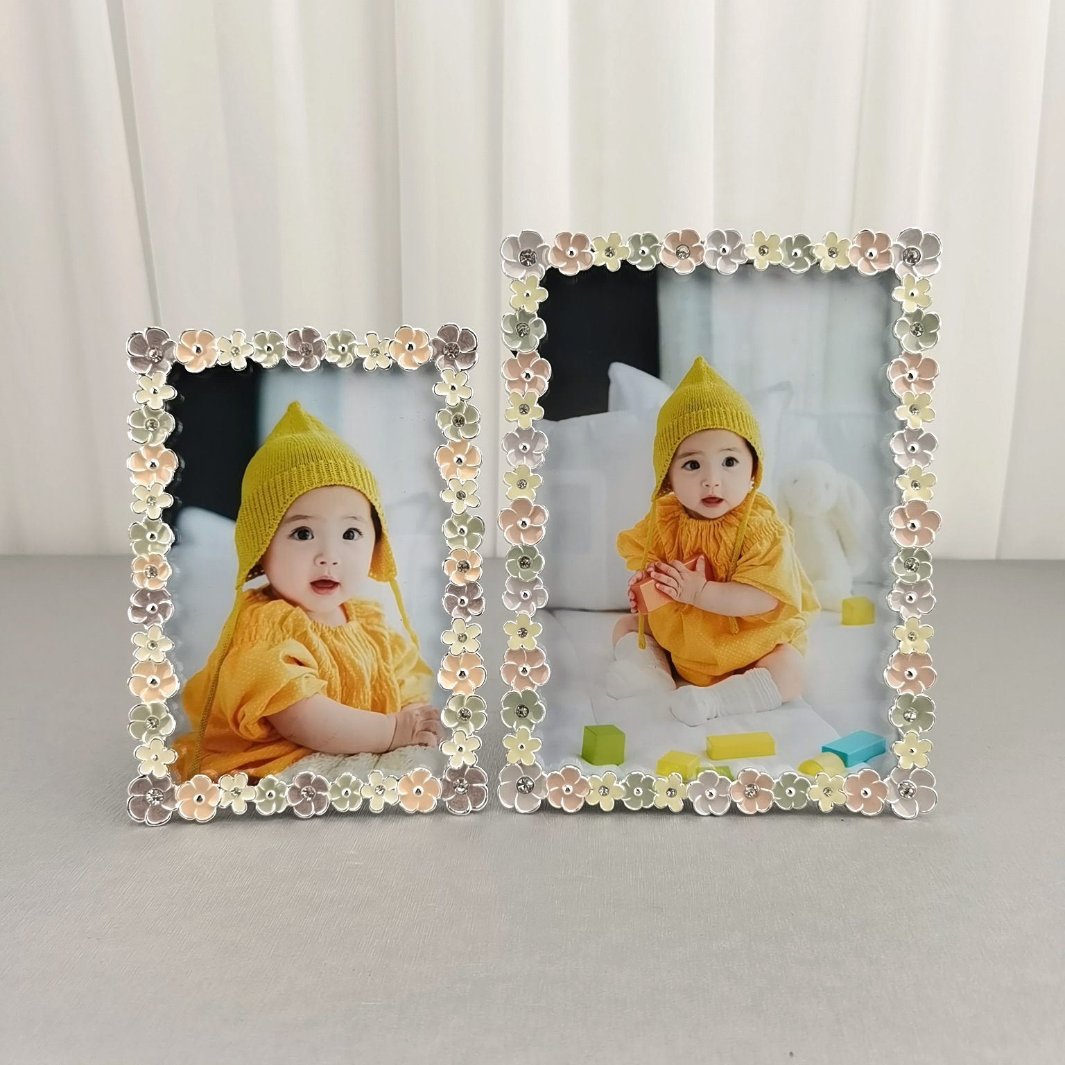 공장 도매 간단한 금속 도금 수제 멀티 컬러 드릴 컬러 흰색 어린이 결혼식 사진 프레임 테이블스토어 가기