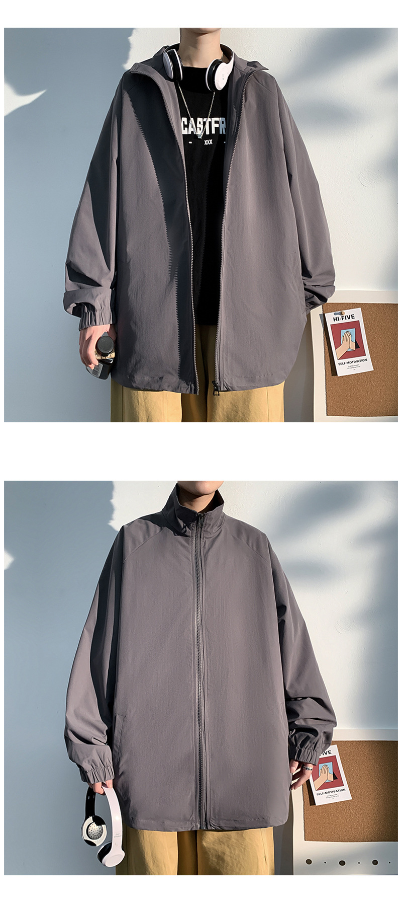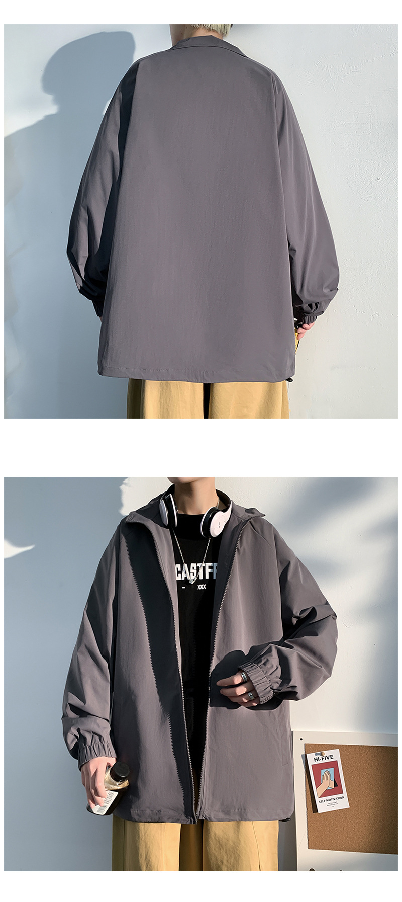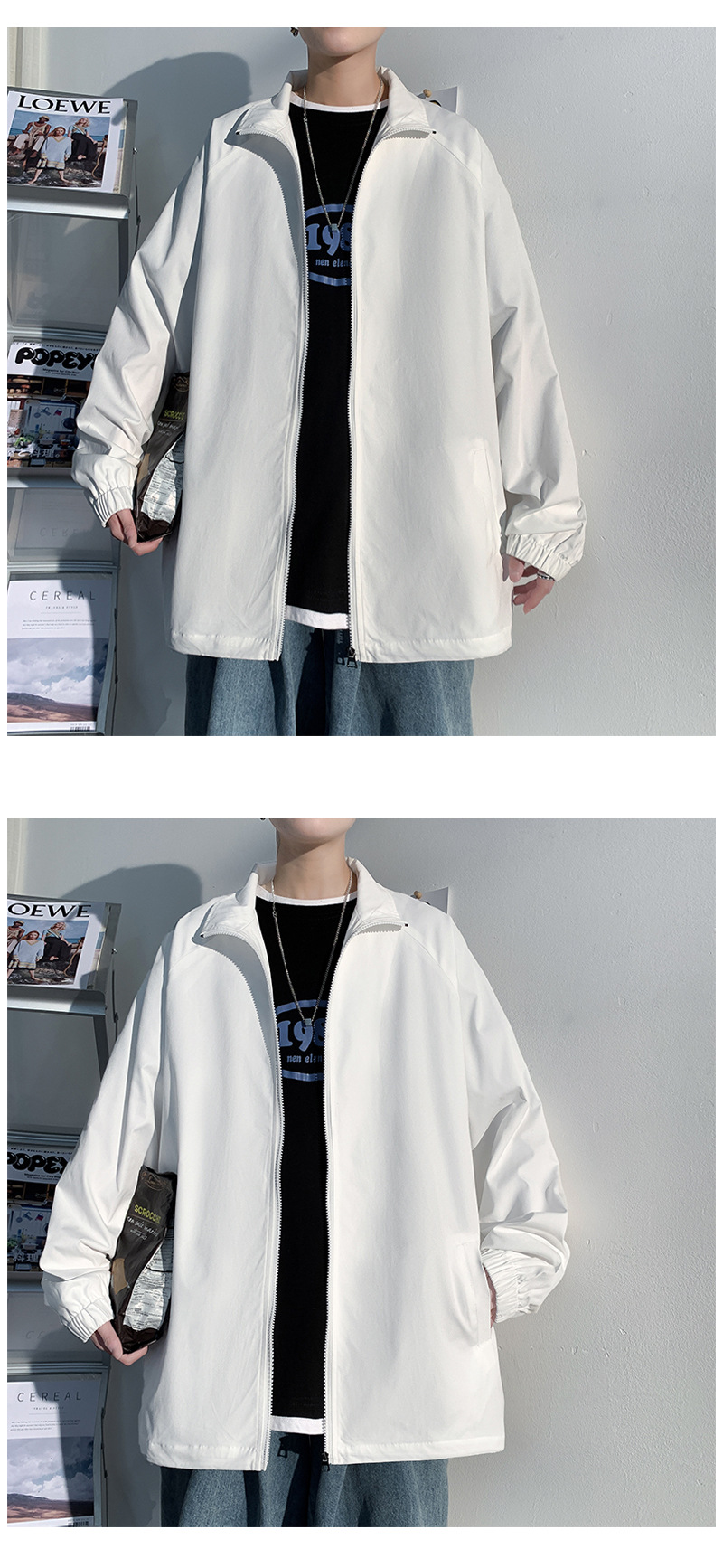 2021 봄 신상 빛과 그림자 흰 벽 후드 재킷 루즈핏 대형 캐주얼 재킷 남성용 상의 J6200 특별판 29