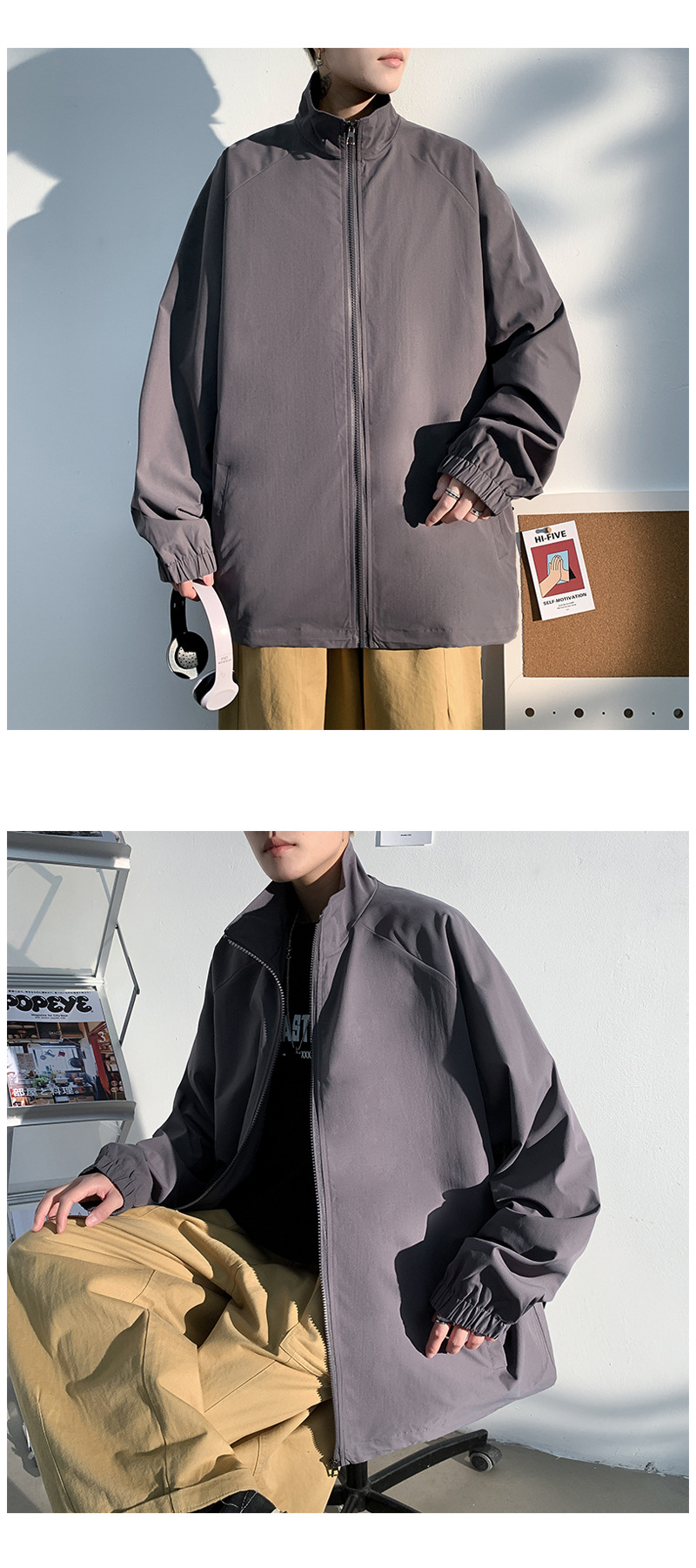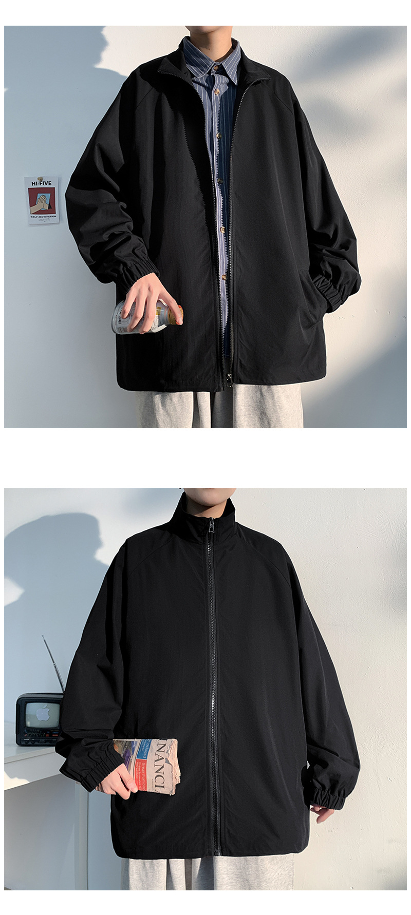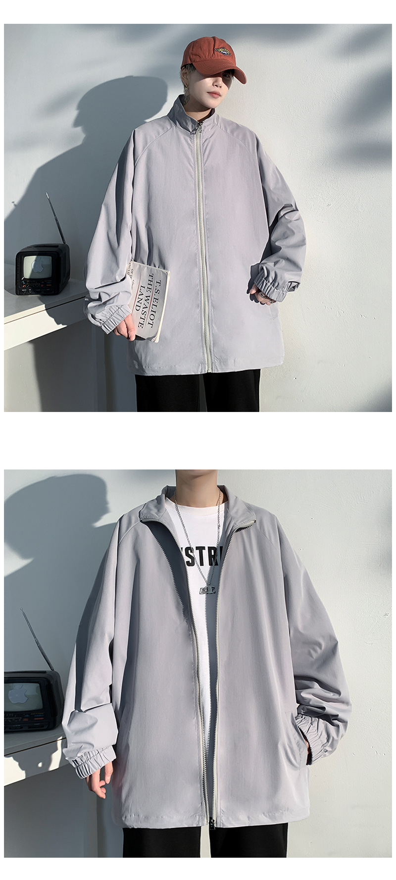 2021 봄 신상 빛과 그림자 흰 벽 후드 재킷 루즈핏 대형 캐주얼 재킷 남성용 상의 J6200 특별판 29