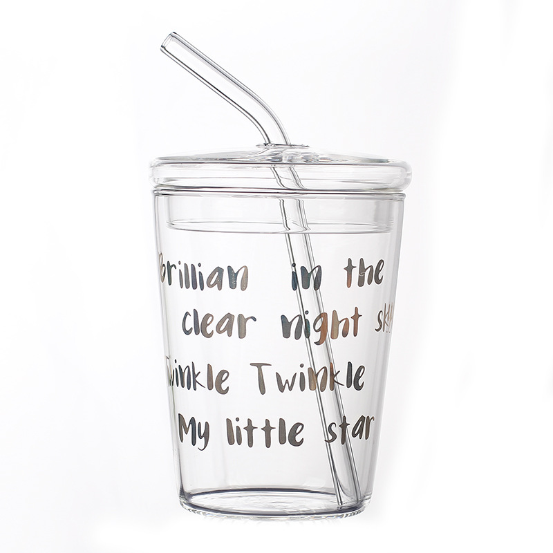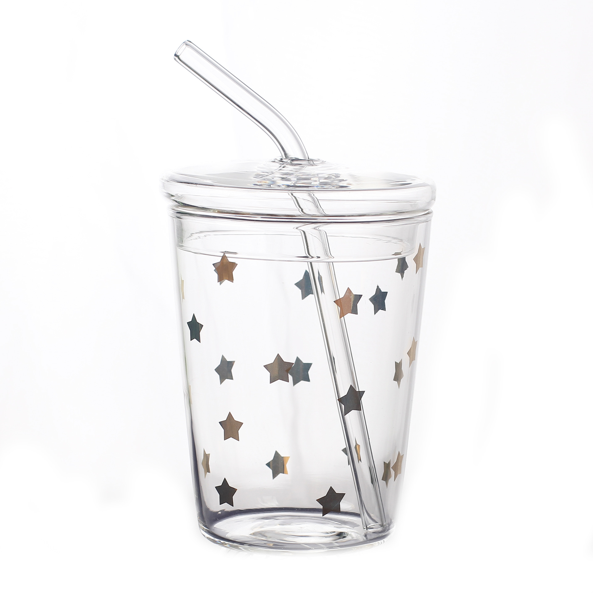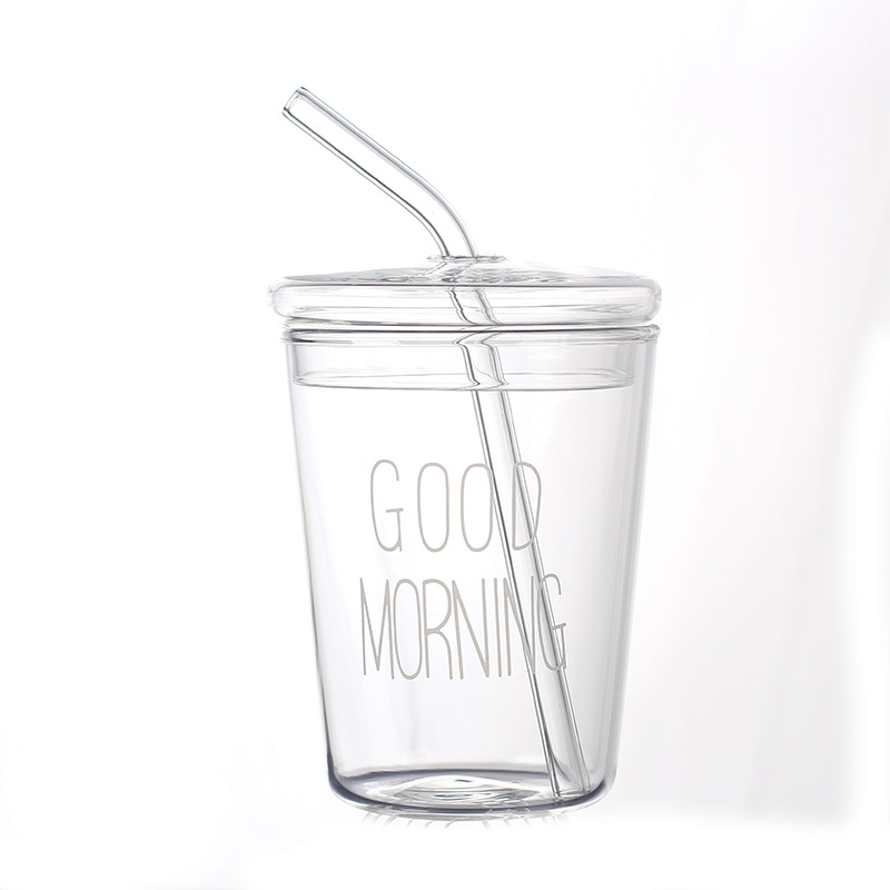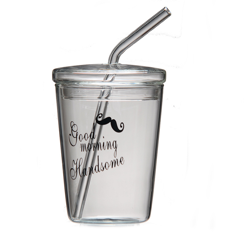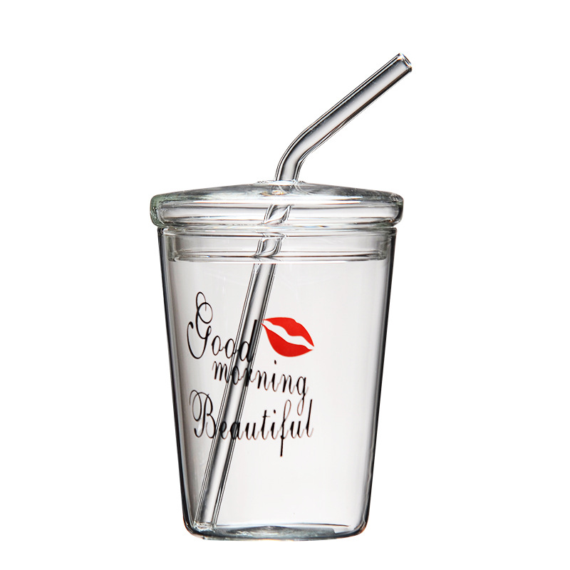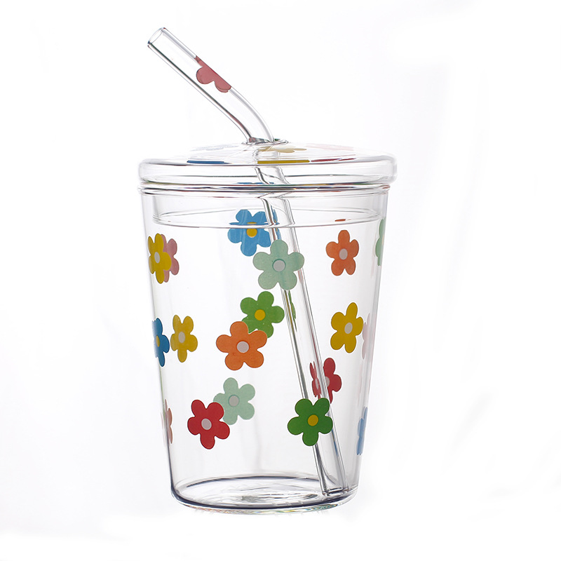 작은 꽃 딸기 유리 빨대 컵 작은 신선한 주스 우유 아침 식사 컵 레몬 뚜껑이있는 우유 컵 커플 컵