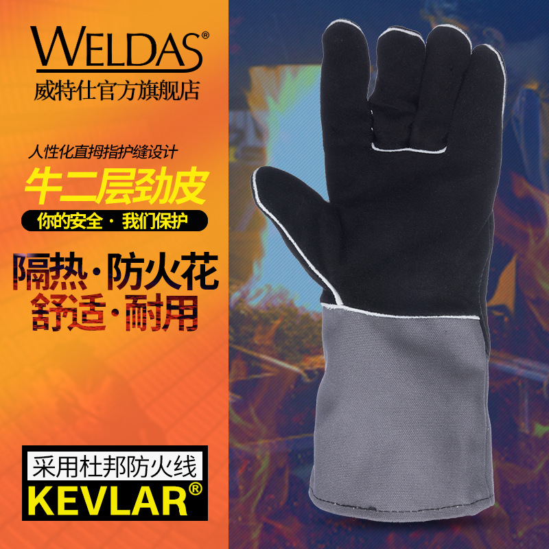 Witts 10-2018 전기 용접 이중 소가죽 내구성 산업용 단열 고온 용접기 장갑 용접 화상 방지