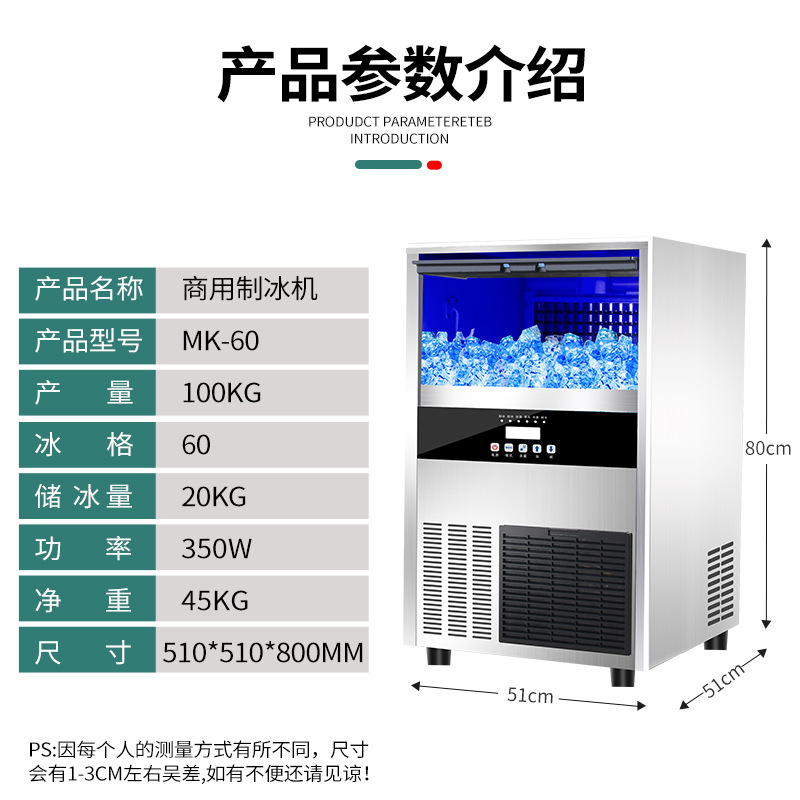 • 일일 생산량 460kg(얼음 300개 트레이)*220V*510*510*800mm