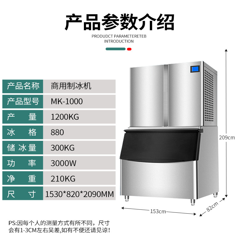 • 일일 생산량 1200kg (880 얼음 트레이)*220V*510*510*800mm