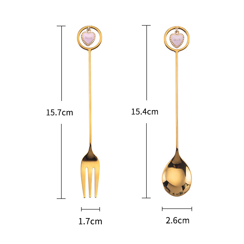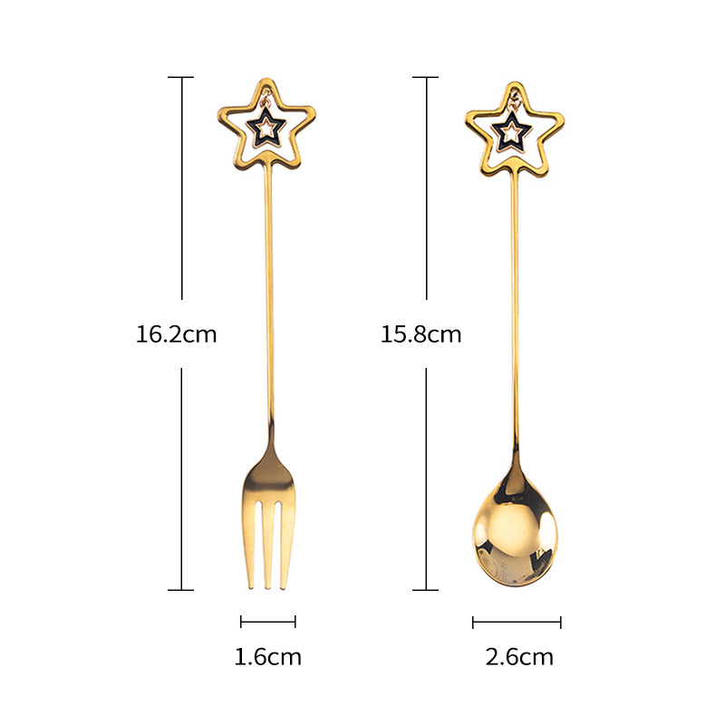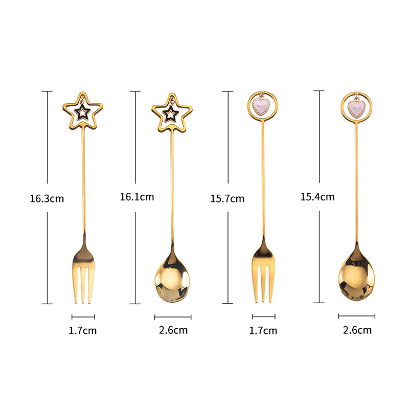 • 골든 스타 + 하트 스푼 포크 1 * opp 포장