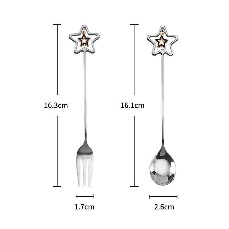 • 실버 스타 스푼 포크 2 피스 세트 * opp 포장