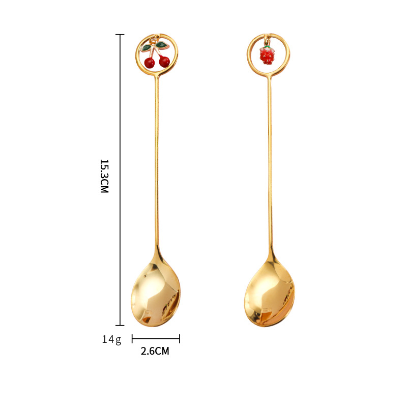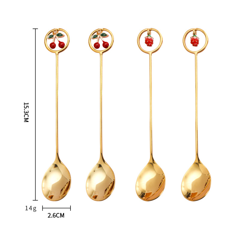 • F42 원 딸기 숟가락 황금 * opp 포장