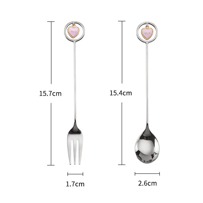 • 실버 하트 모양의 숟가락과 포크 2 피스 세트 * opp 포장