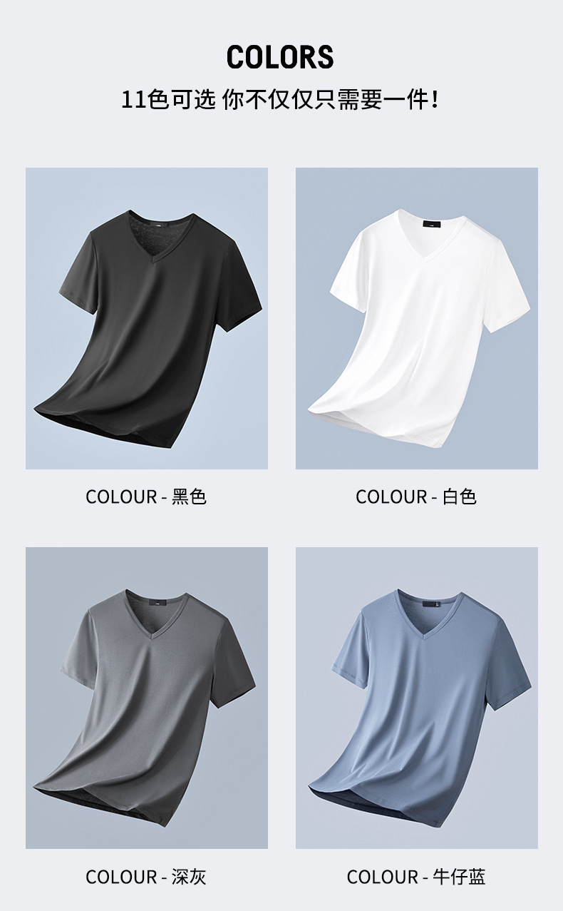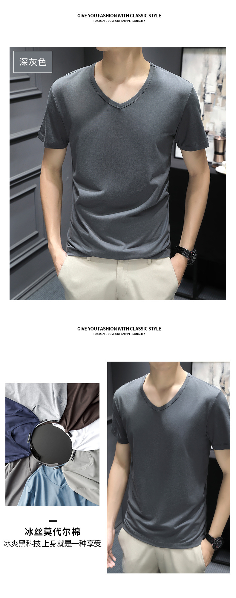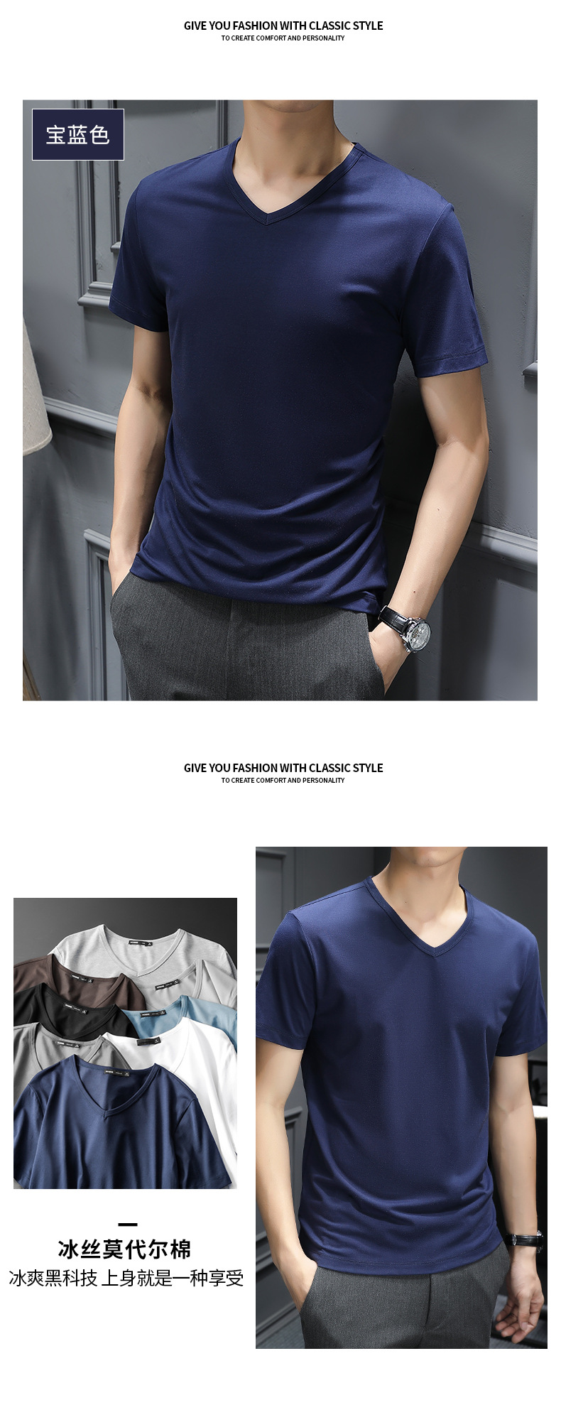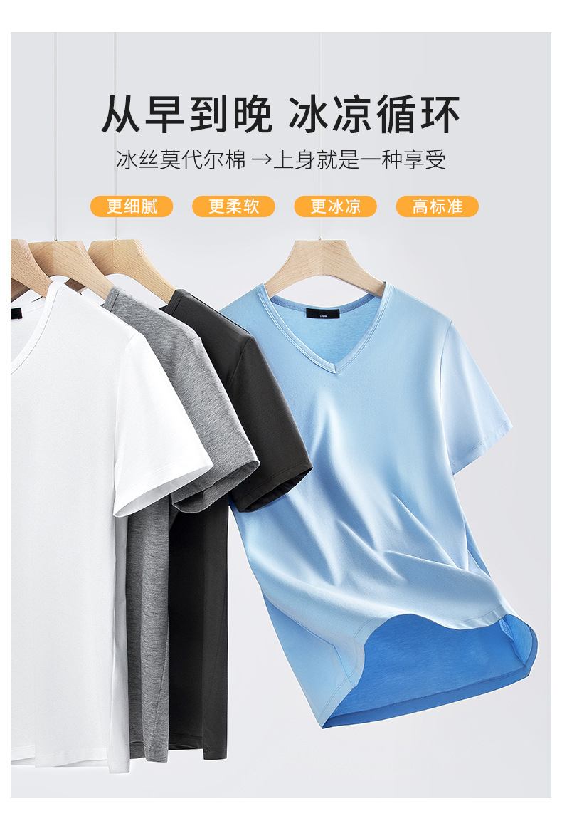 50S 피부 친화적인 모달 반팔 티셔츠 남성용 여름 청소년 기본 셔츠 브이넥 아이스 실크 속건성 통기성 상의스토어 가기