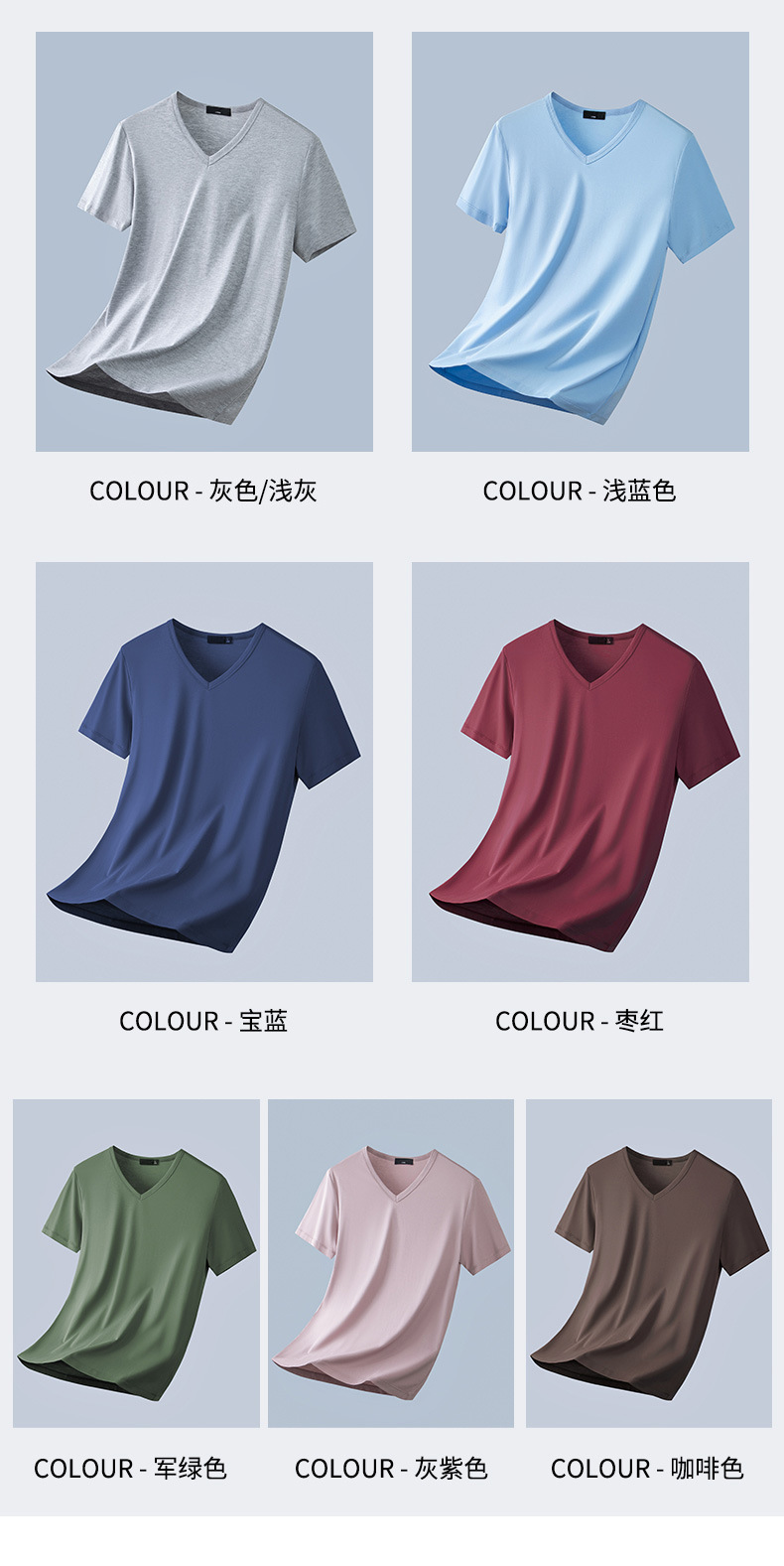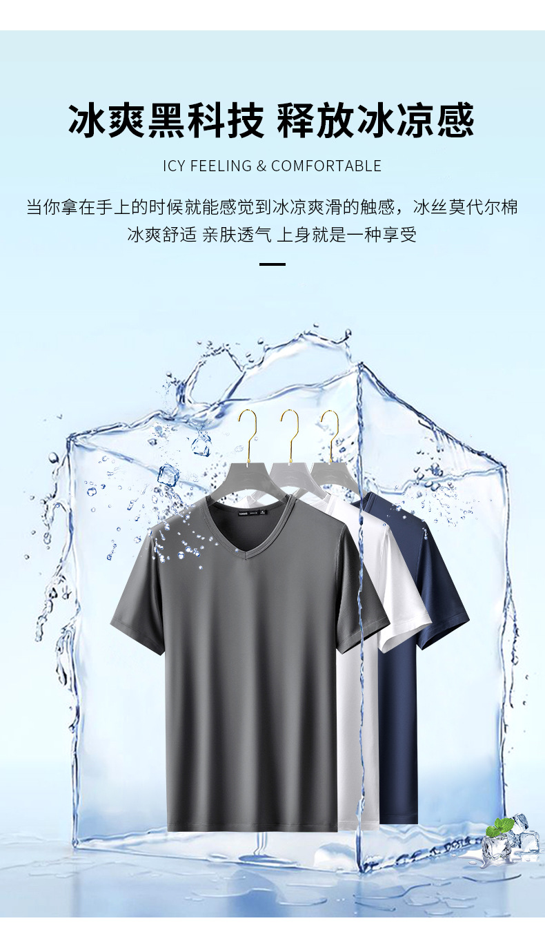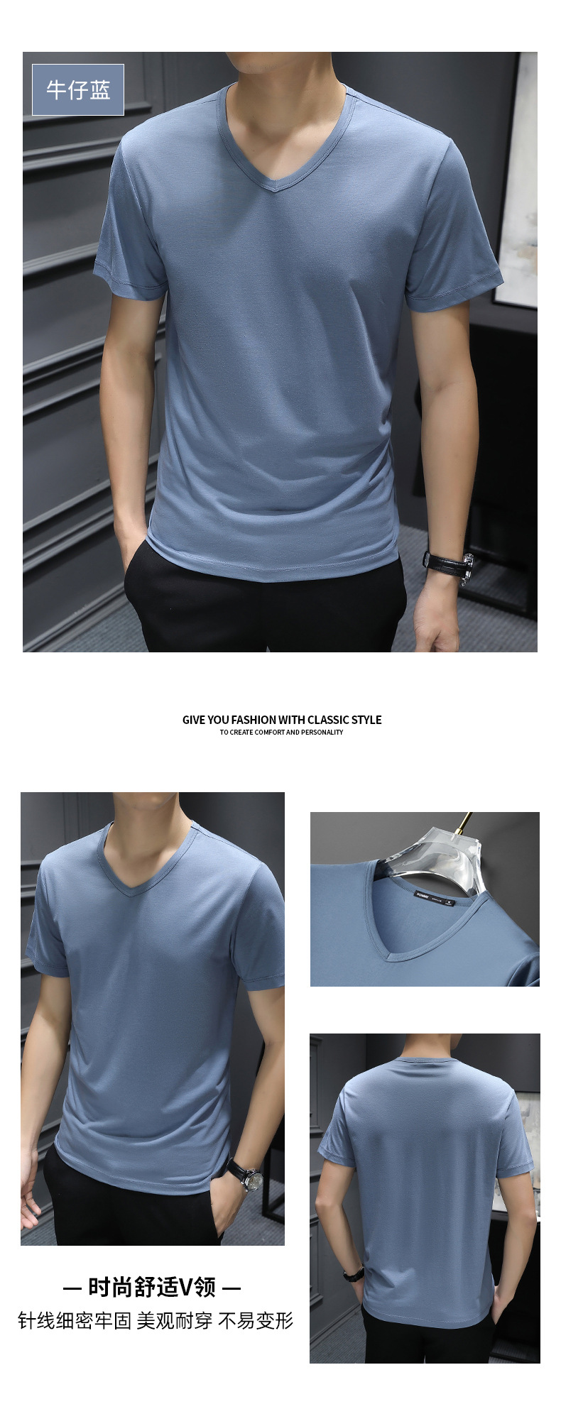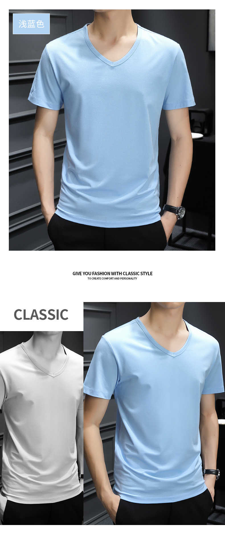50S 피부 친화적인 모달 반팔 티셔츠 남성용 여름 청소년 기본 셔츠 브이넥 아이스 실크 속건성 통기성 상의스토어 가기